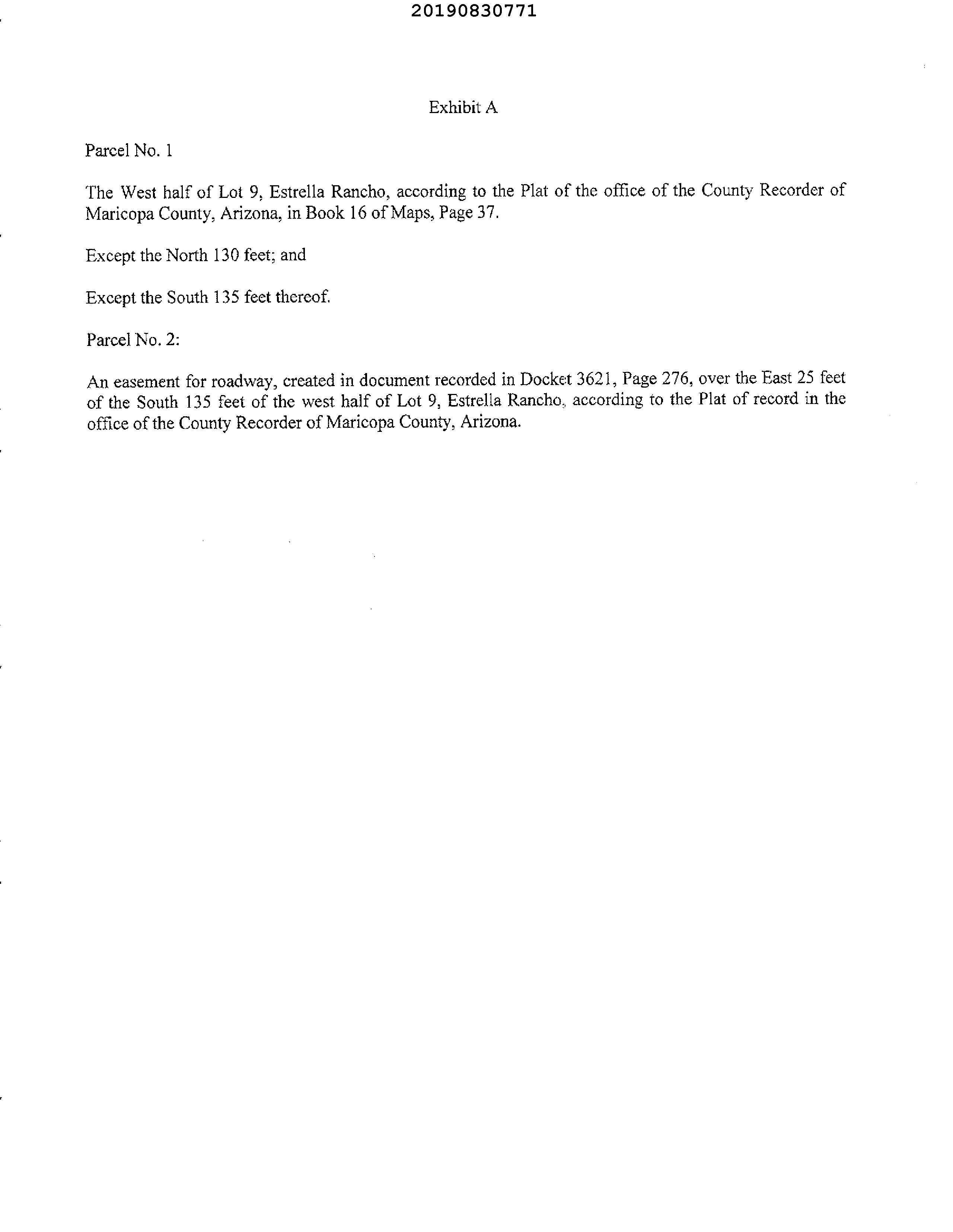 Legal Description : Lot 9 Estrella Rancho Lt 9 W2 Ex N 130' & Ex S 135'