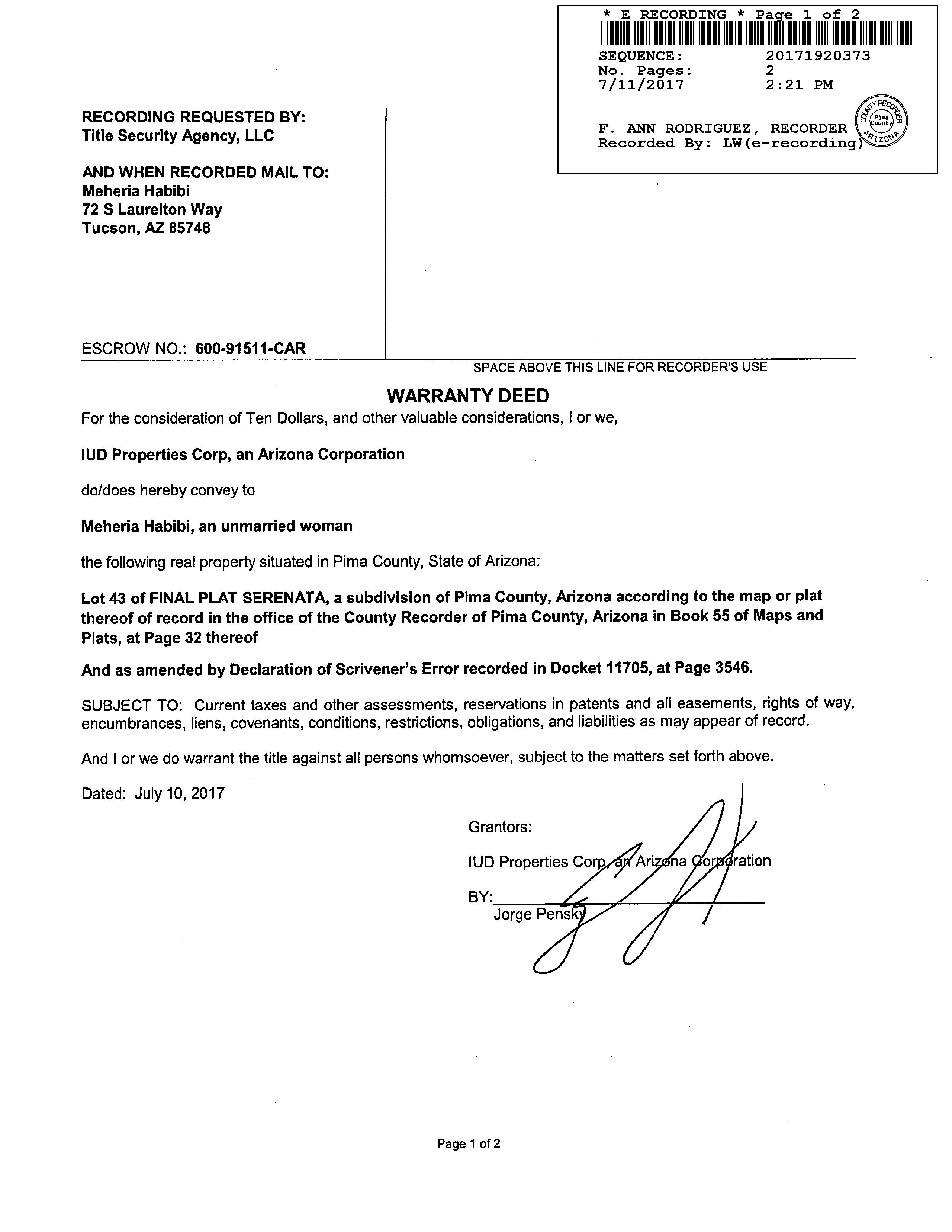 Owner Name: Habibi Meheria / APN / Alternate APN: 133-55-5070 / Deed Type: Warranty Deed