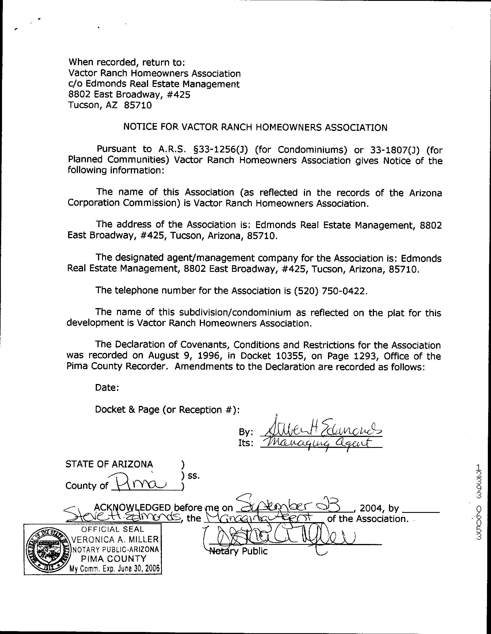 Mailing Address : 7307 E Vactor Ranch Trl, Tucson AZ 85715-3253 C033