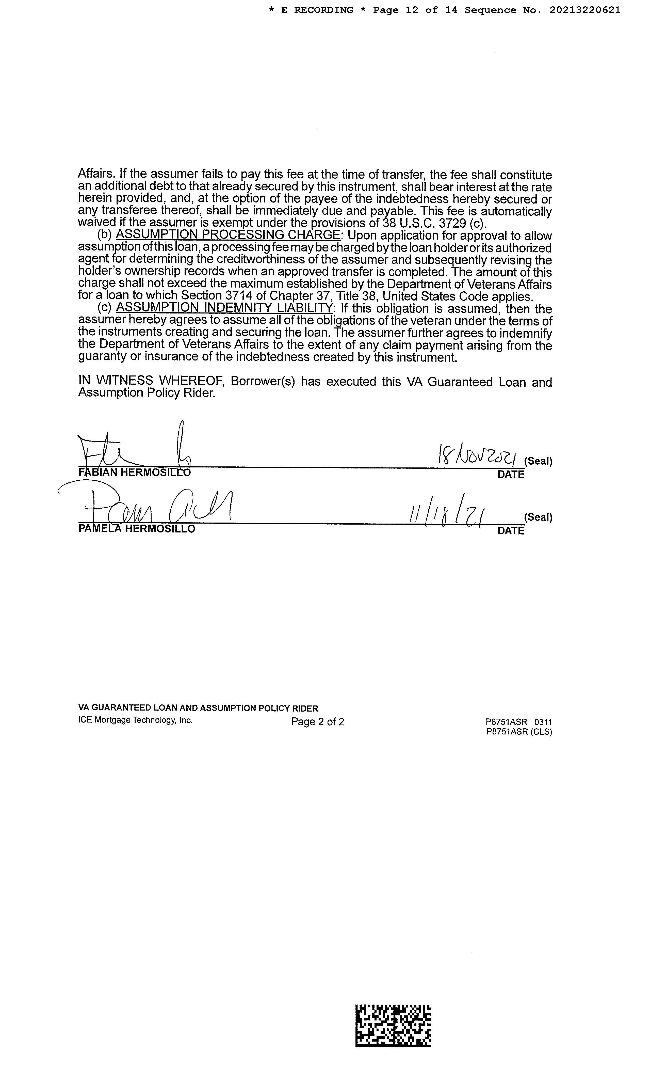 OWNER: HERMOSILLO FABIAN & PAMELA  AFFIDAVIT    2021 3220620 11/18/2021