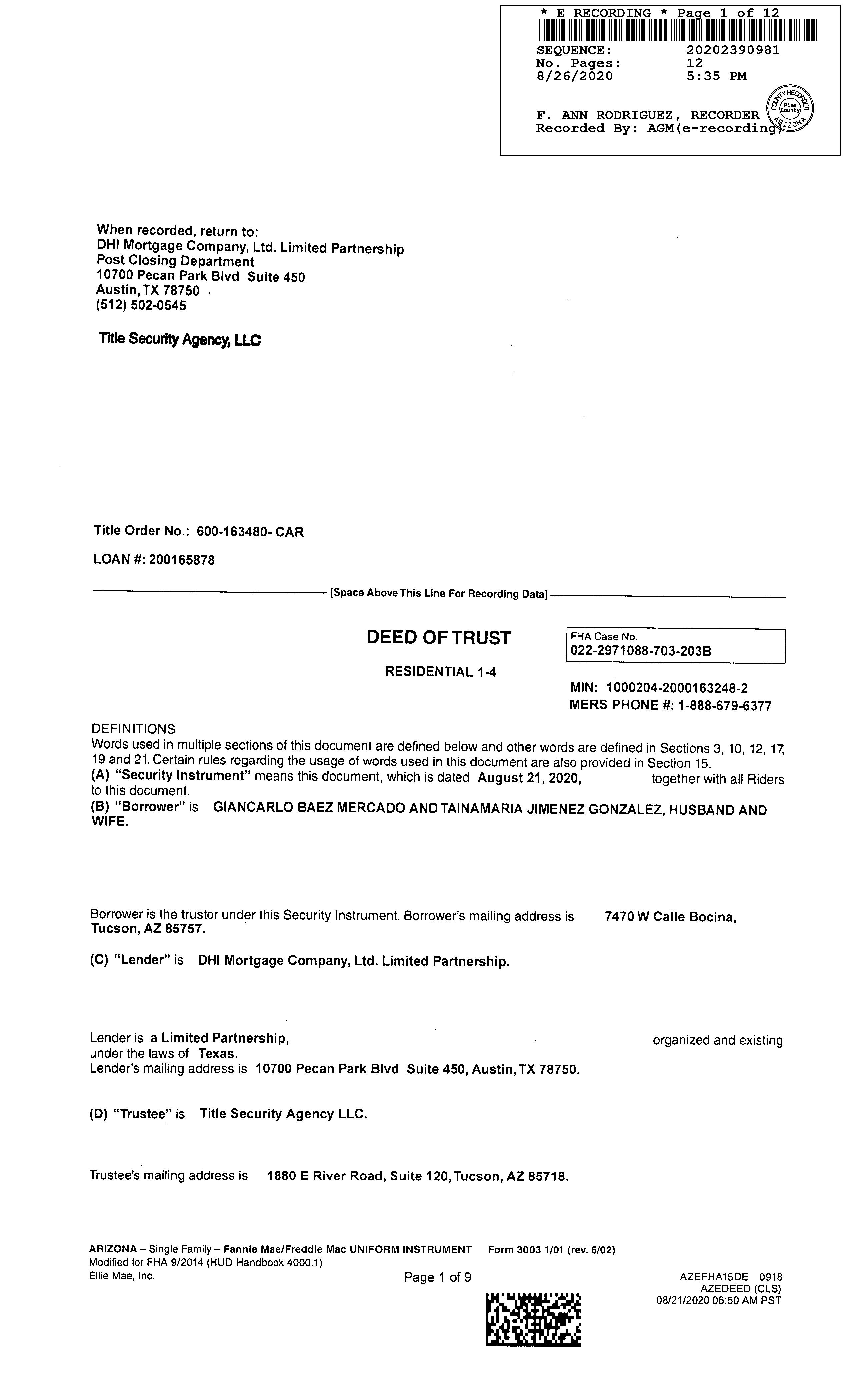 Lender : Dhi Mtg Co Ltd Lp