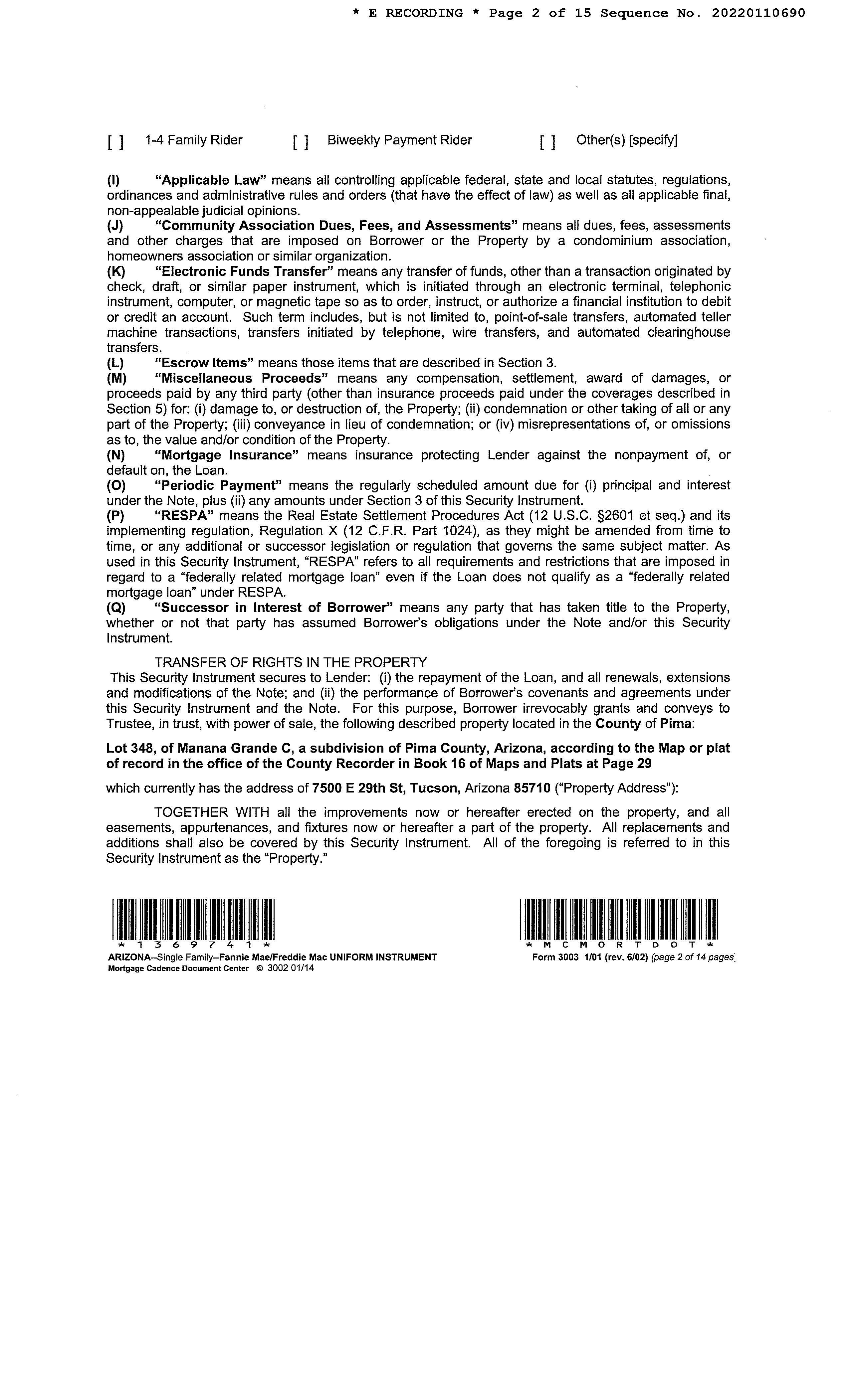 Subject Property : 7500 E 29th St Tucson AZ 85710