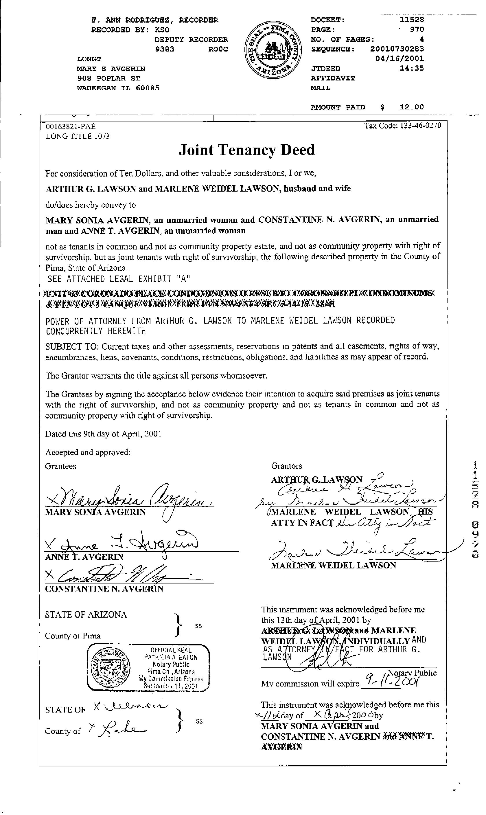 Owner Name: Avgerin Mary Sonia & Constanti /Avgerin Anne T