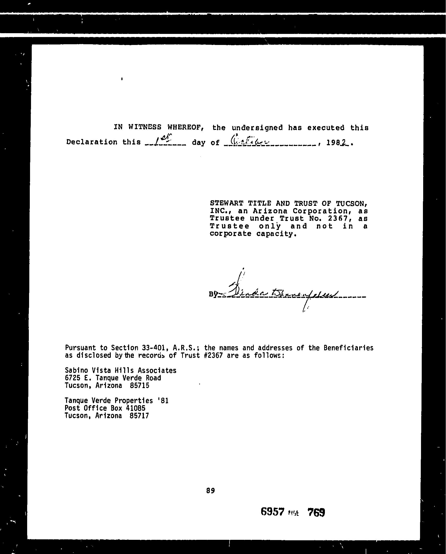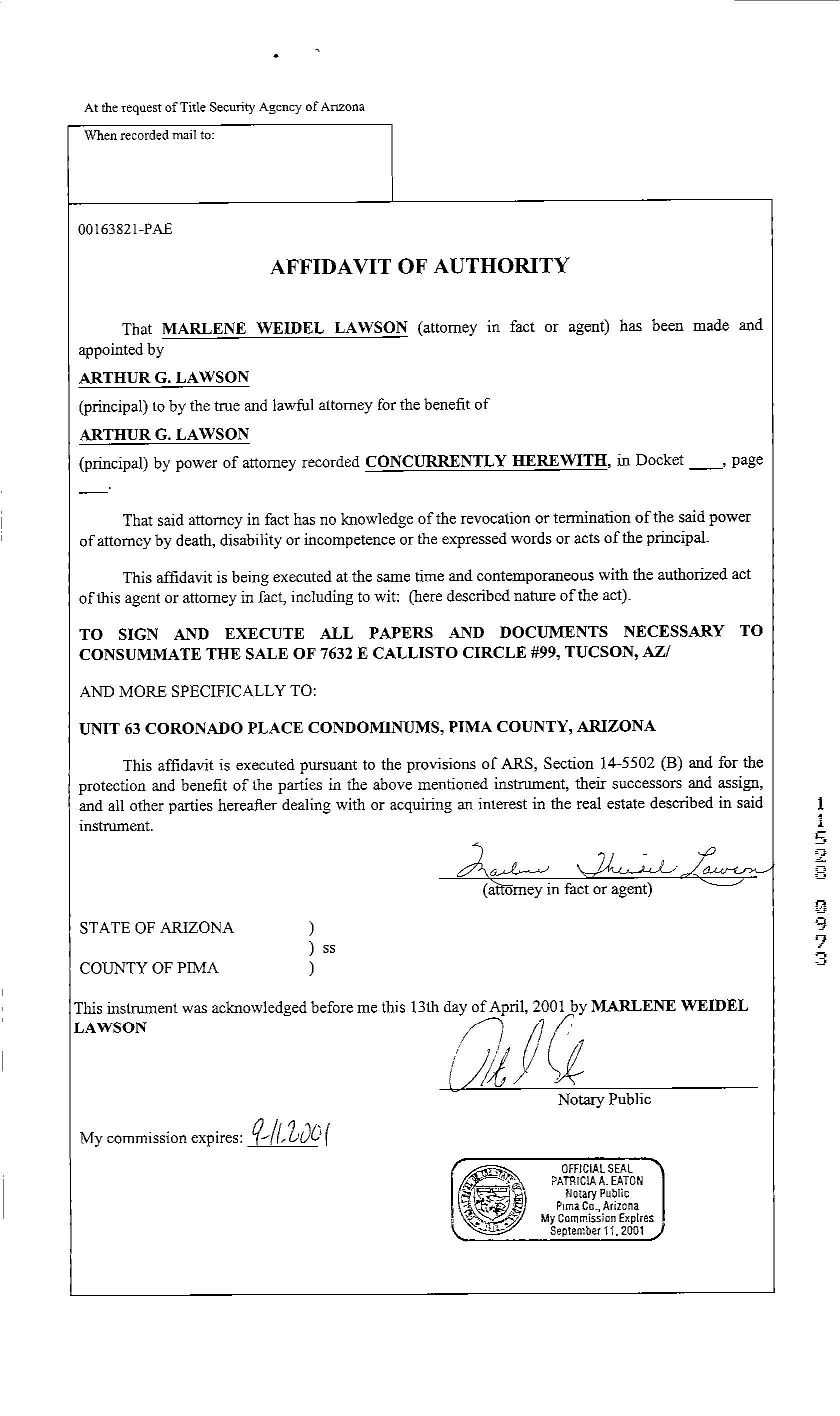Mailing Address : 7623 E Callisto Cir Unit 99, Tucson AZ 85715-6932 C047