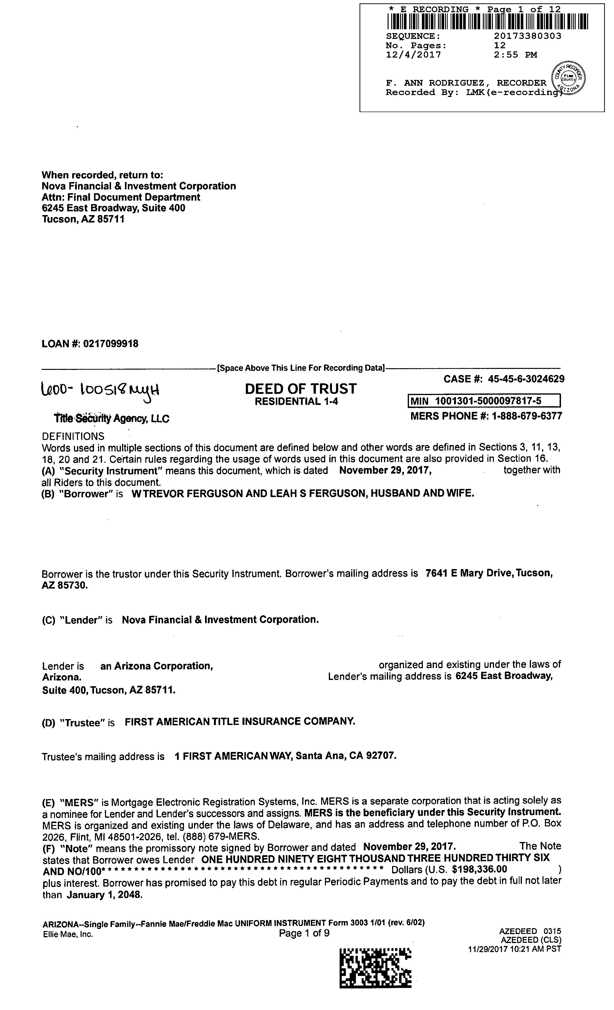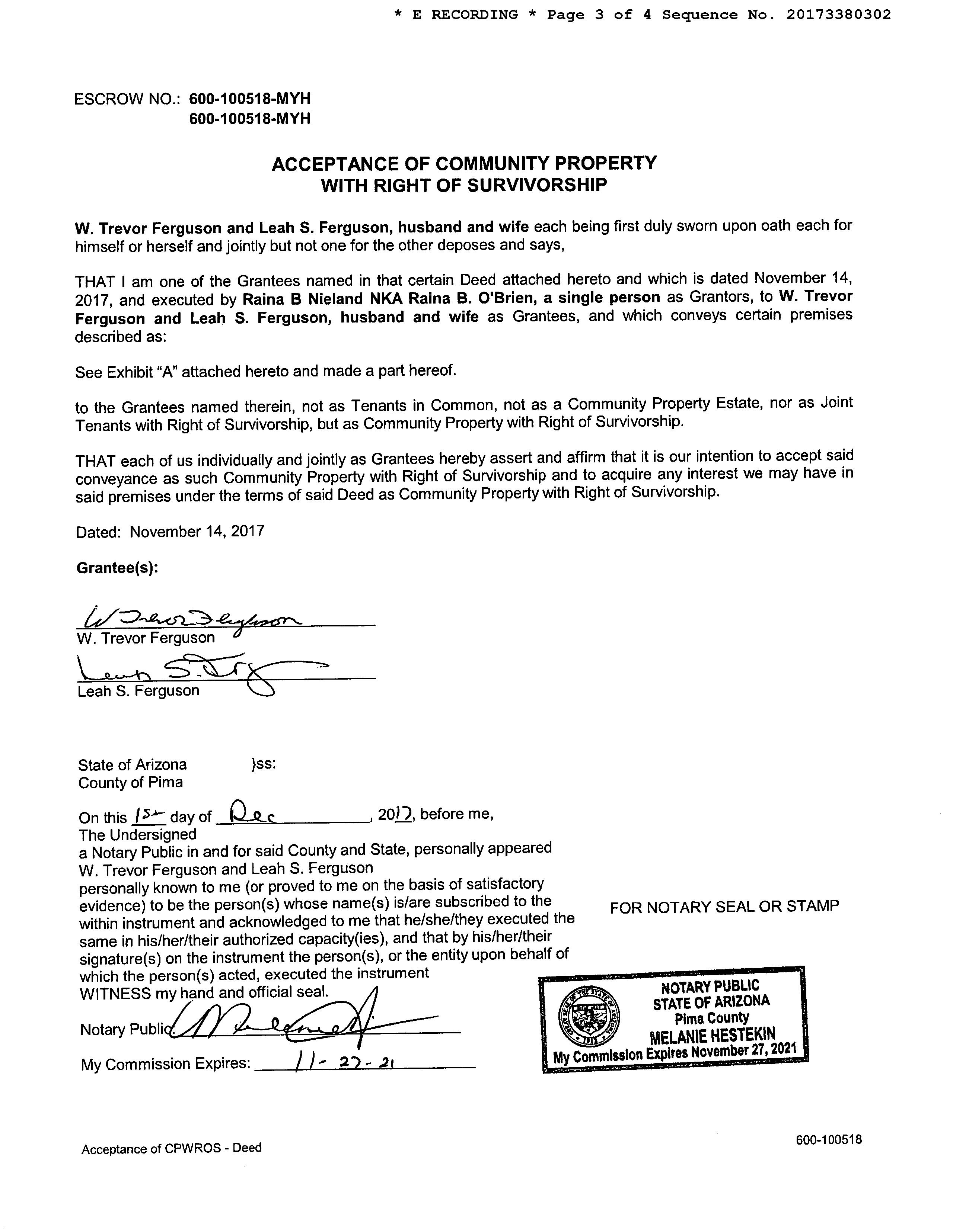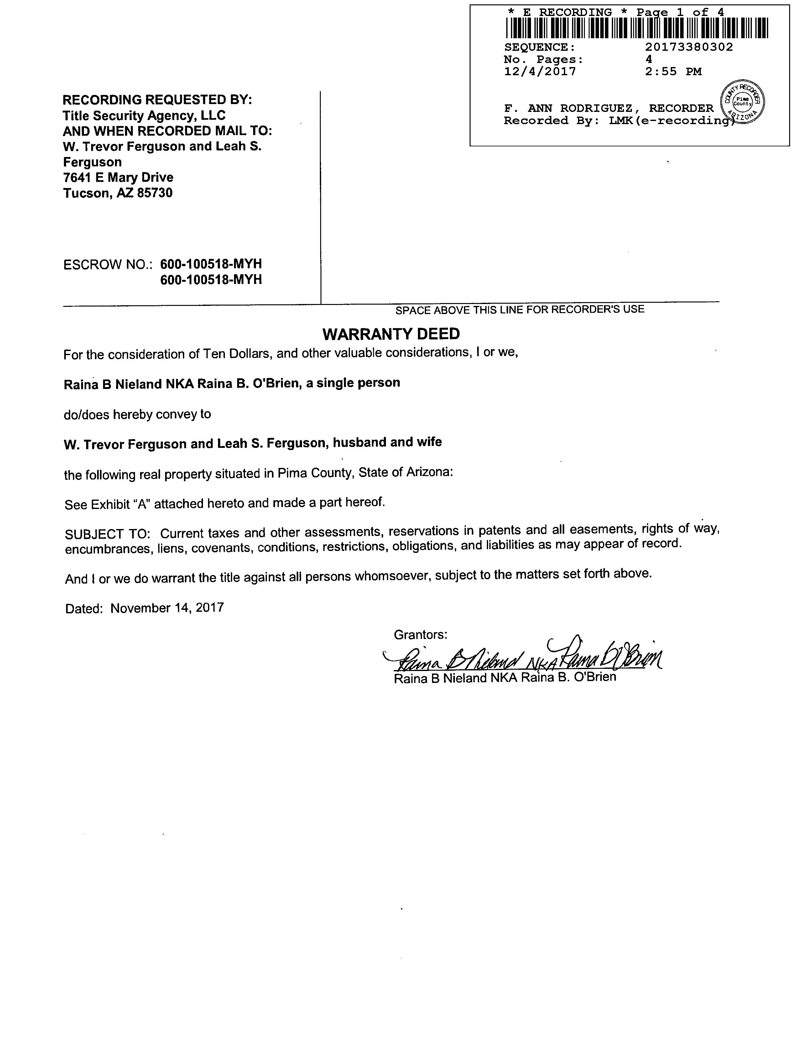 OWNER: FERGUSON W TREVOR & LEAH S AFFIDAVIT 2017 3380302 12/04/2017