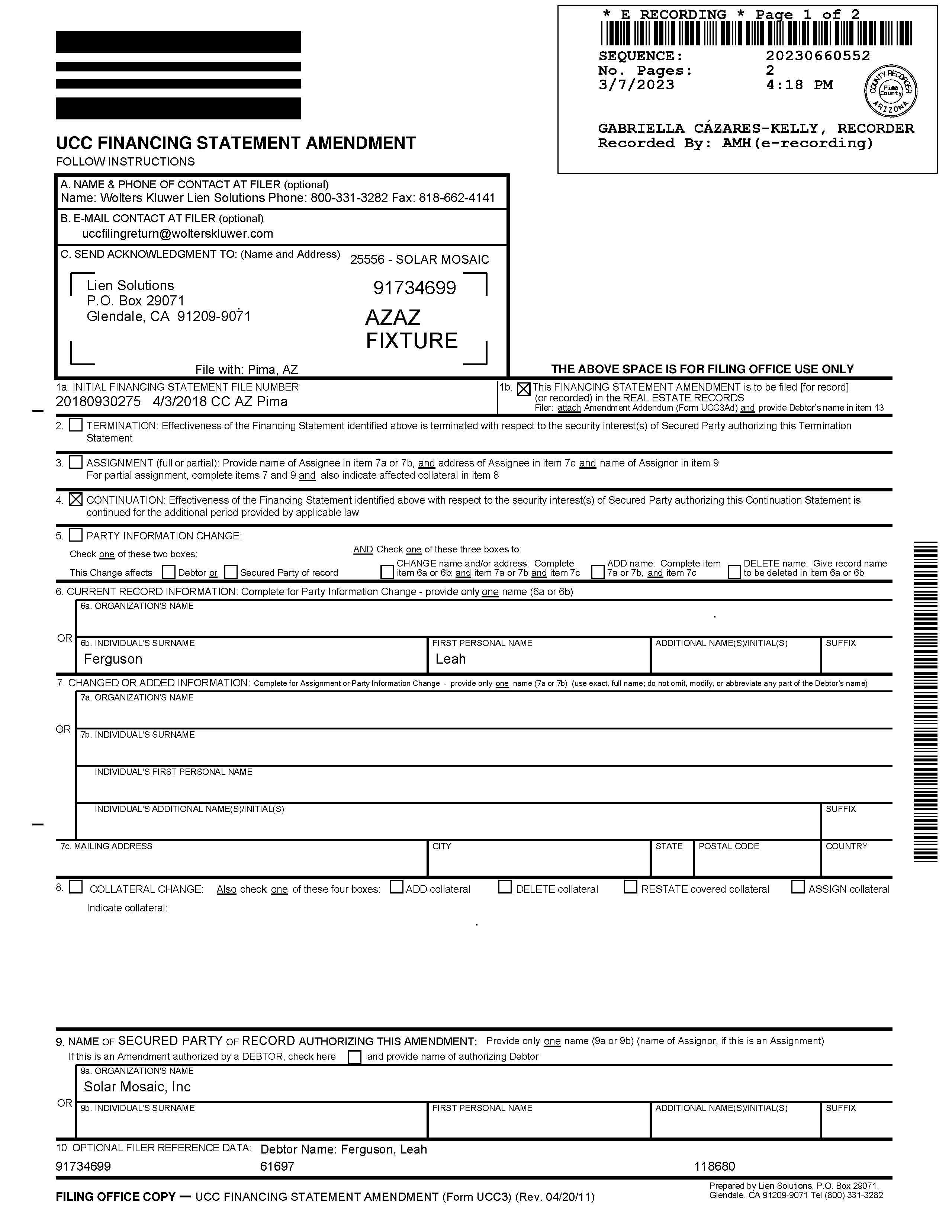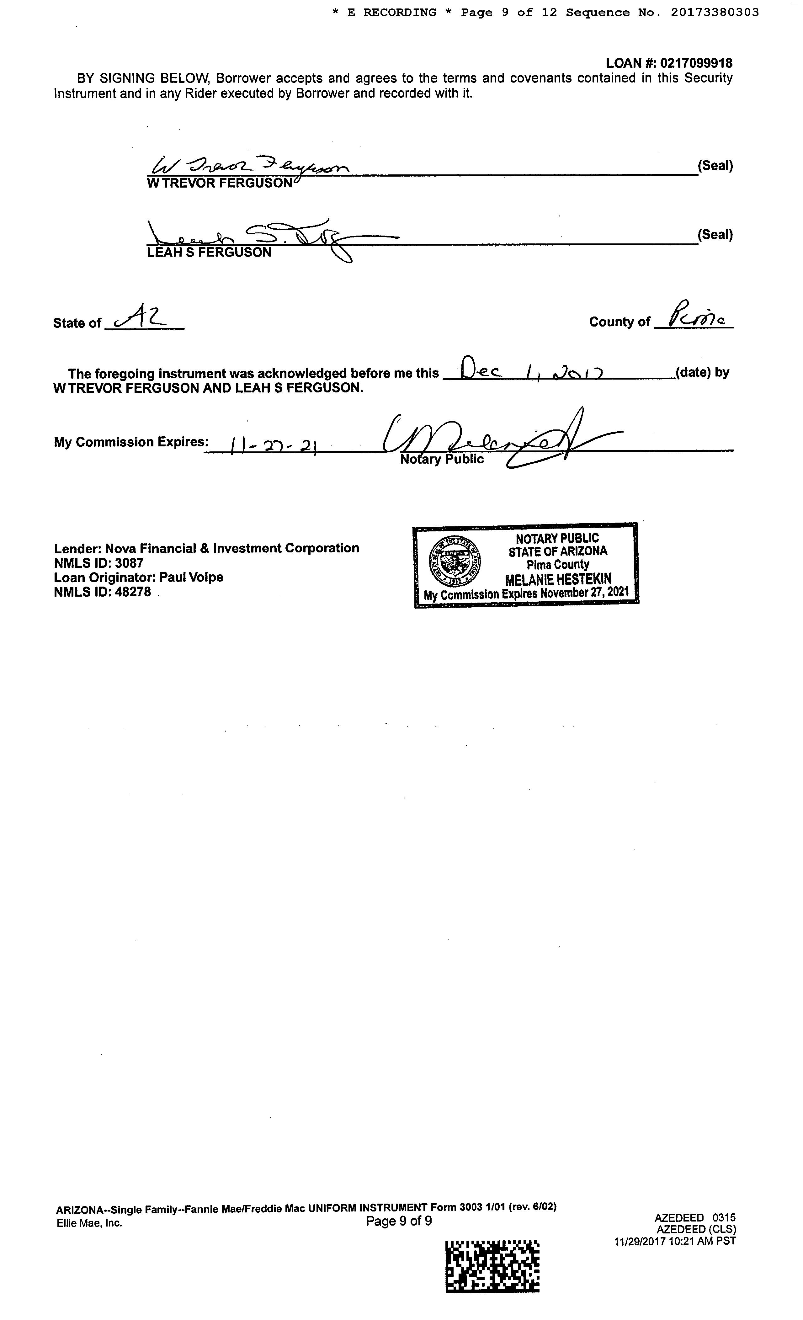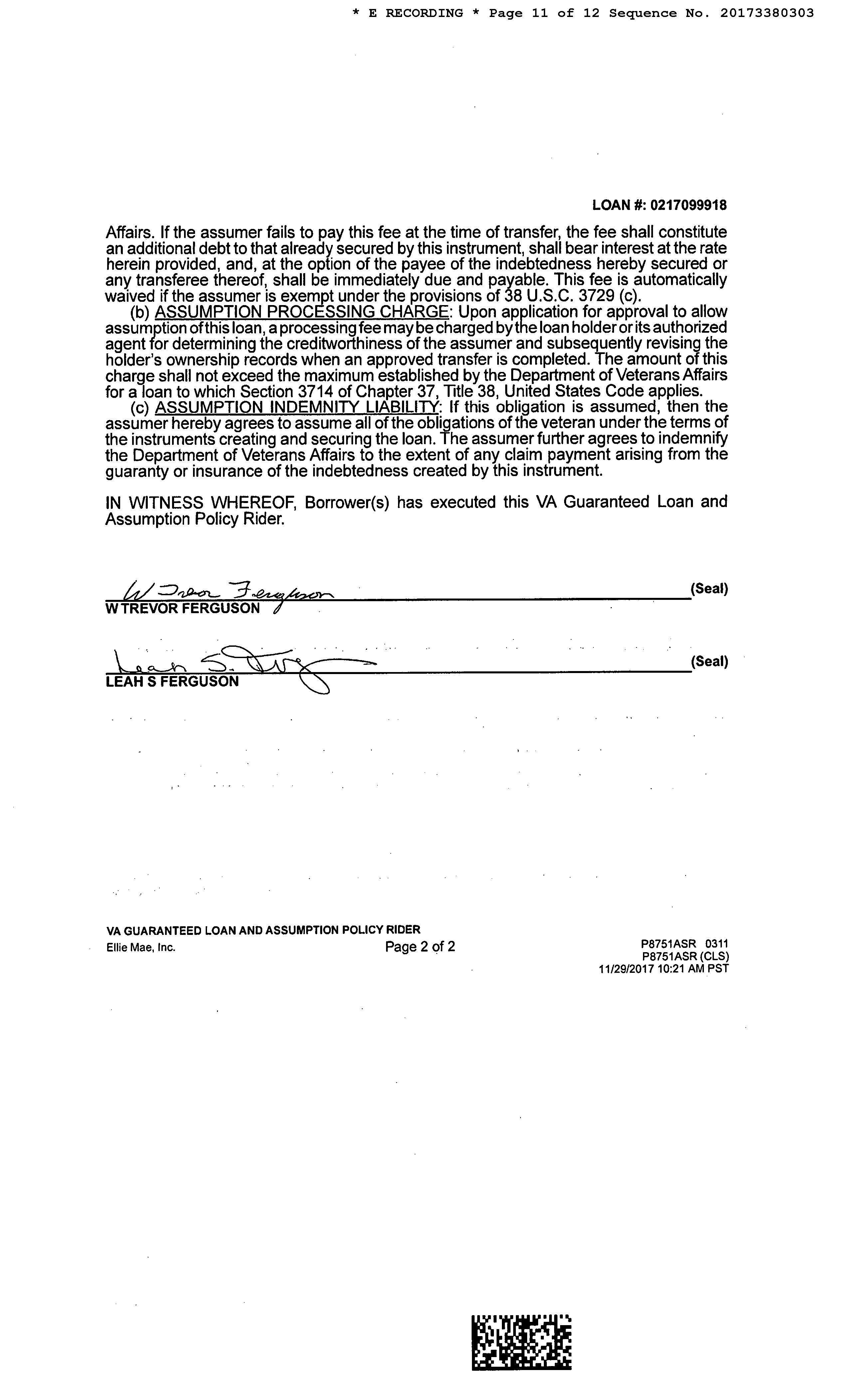 OWNER: FERGUSON W TREVOR & LEAH S AFFIDAVIT 2017 3380302 12/04/2017