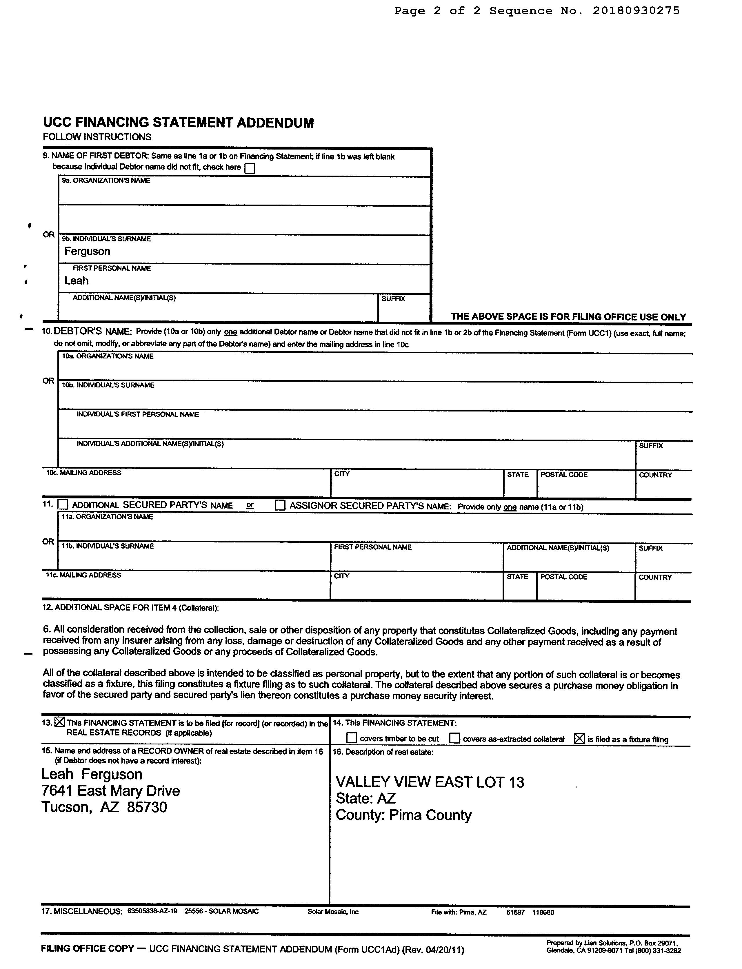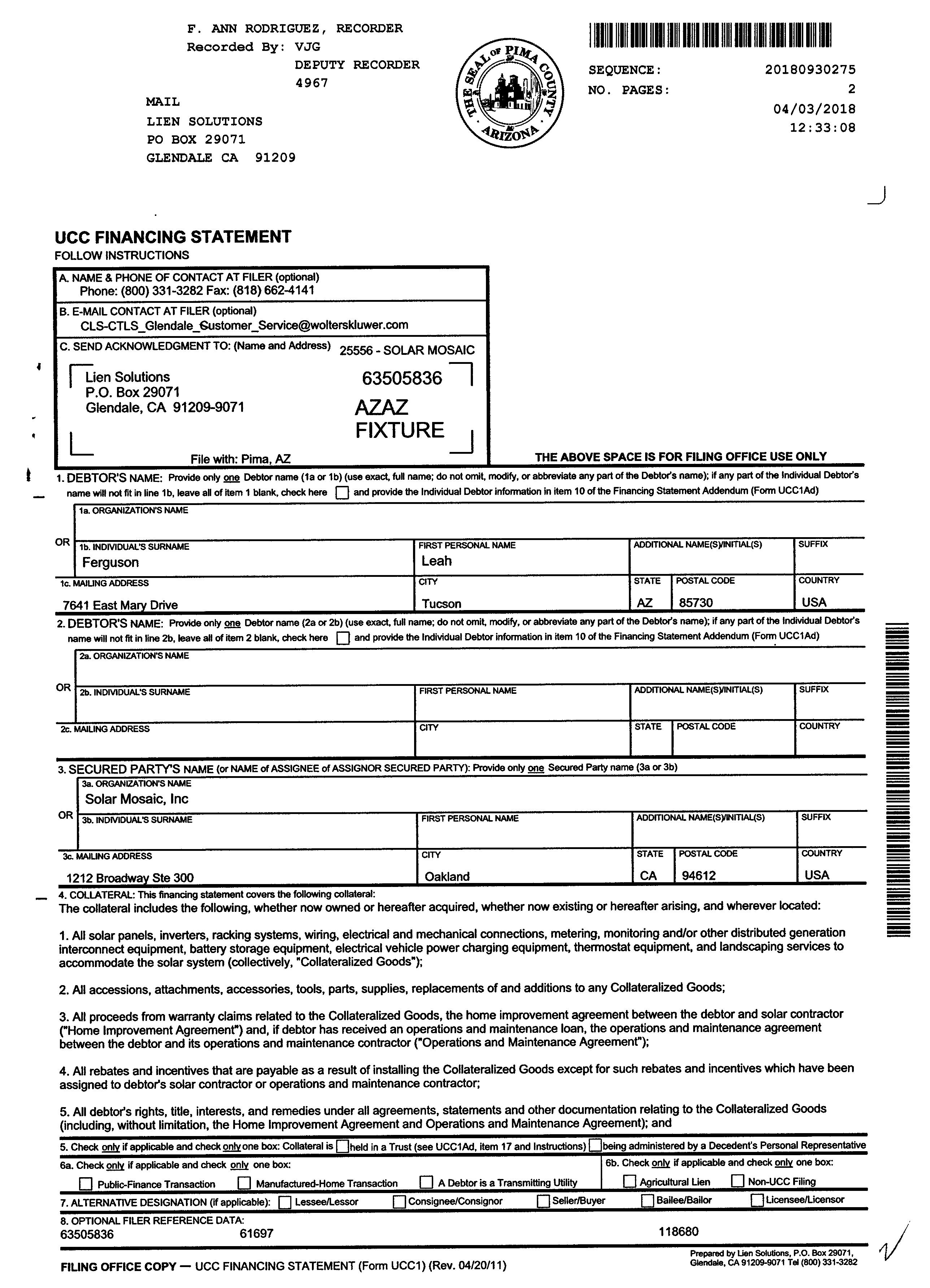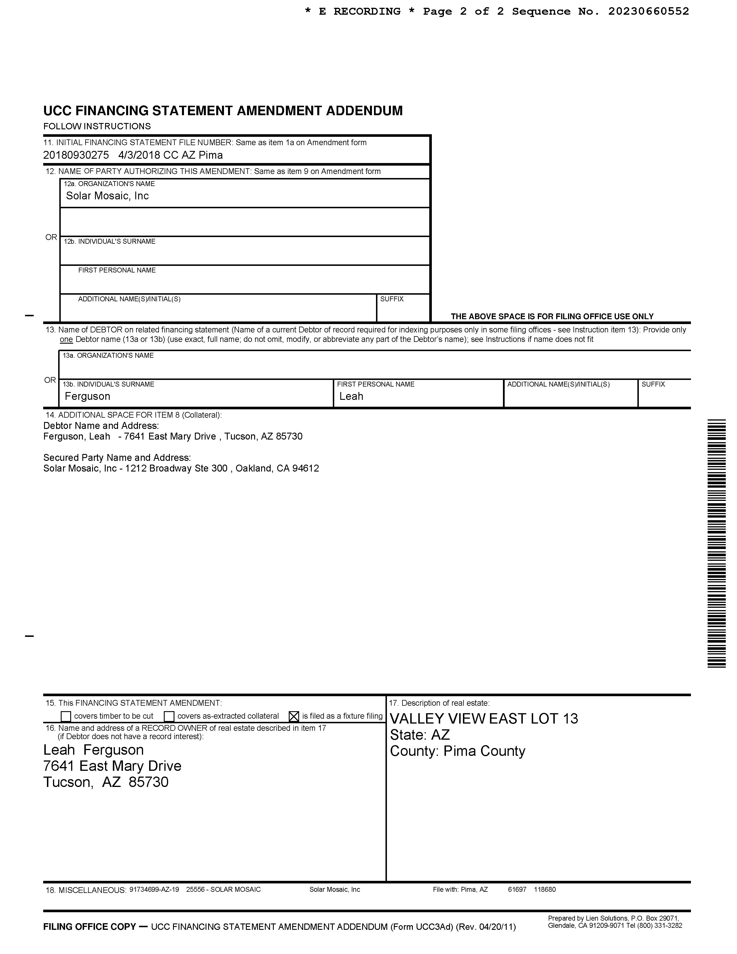 Mailing Address : 7641 E Mary Dr, Tucson AZ 85730-1829 C053