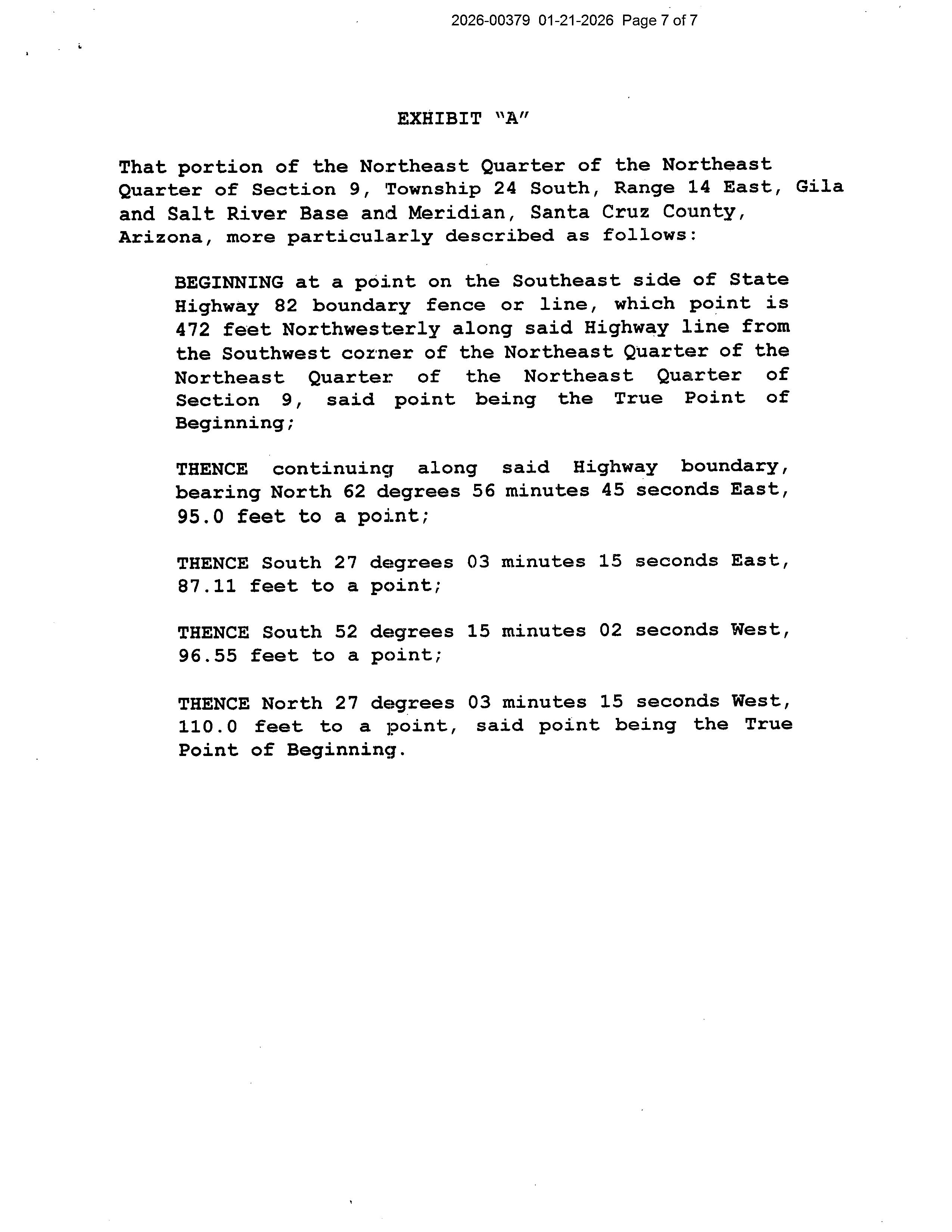 LegalDescriptionDetails City,Municipality,Township:NOGALESSec/Twn/Rng/Mer:SEC09TWN24SRNG14EBriefDescription:APORTIONOFLANDINTHES2NE4NE4OF SECTION9T24SR14E