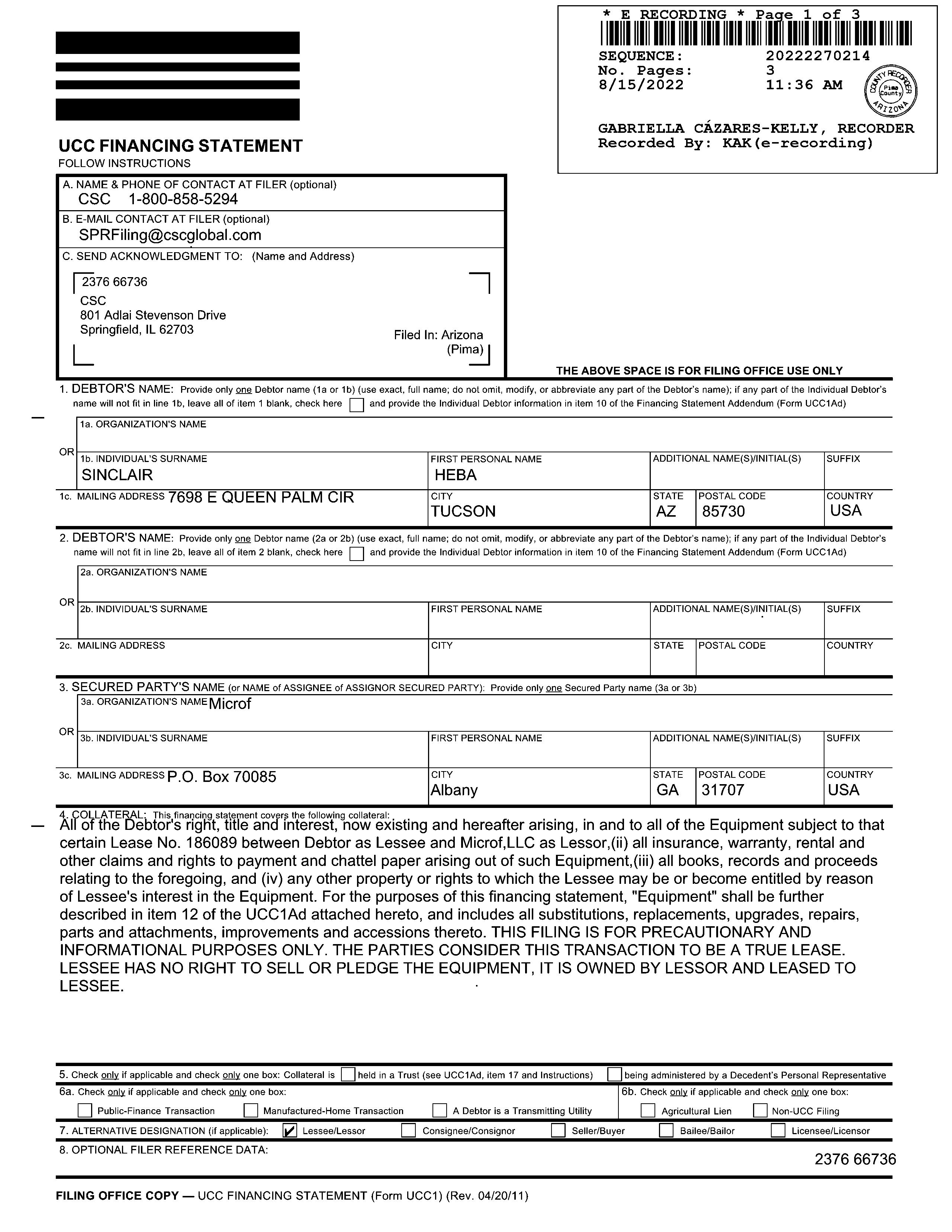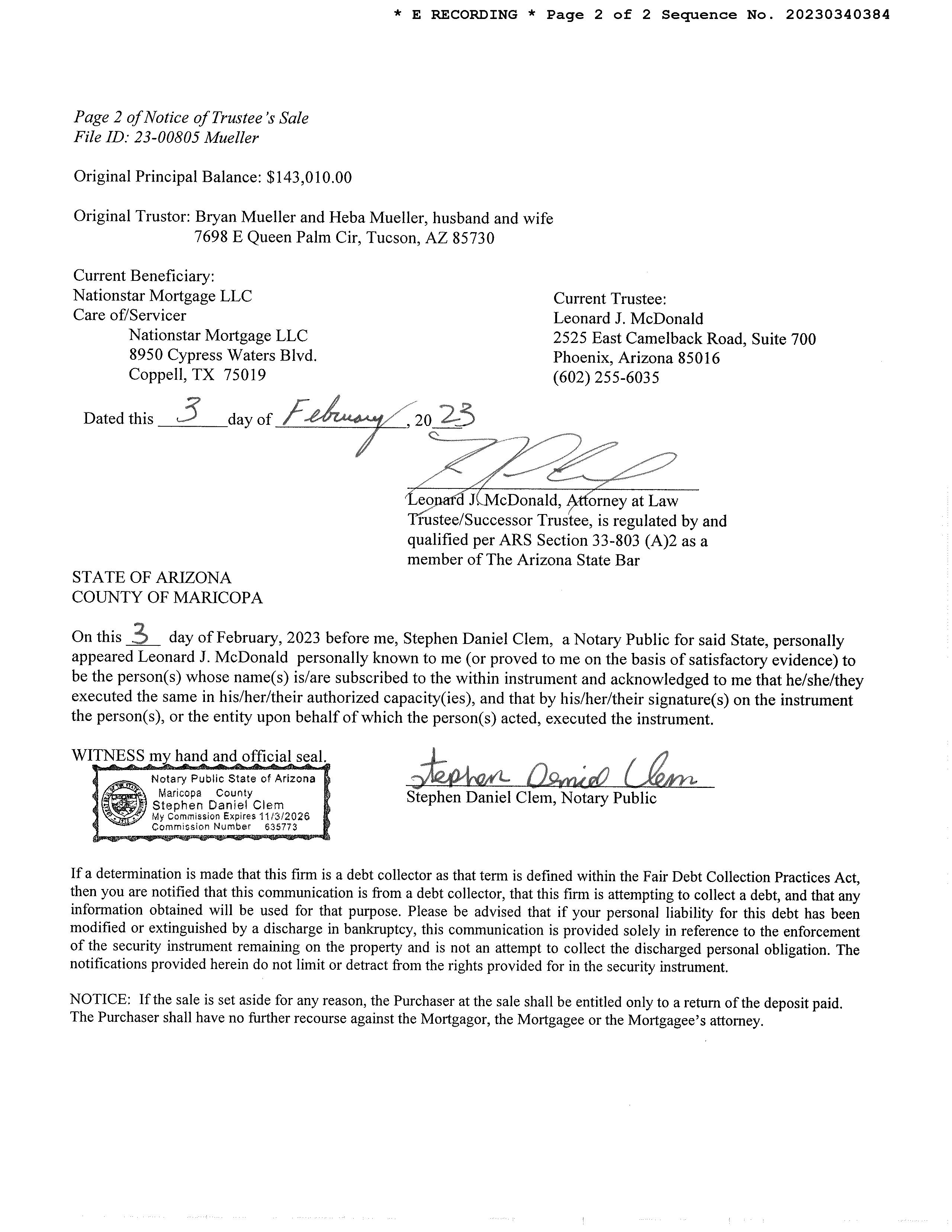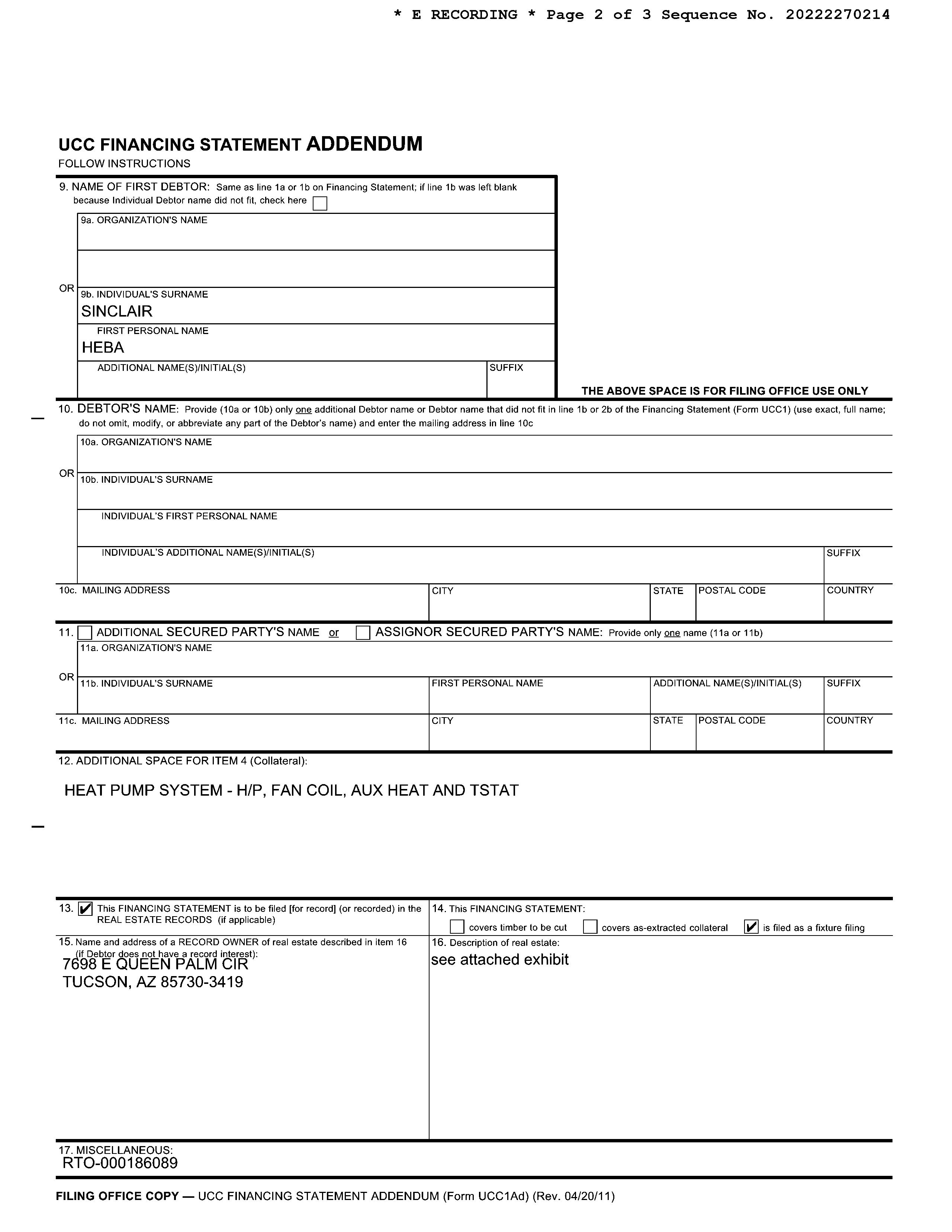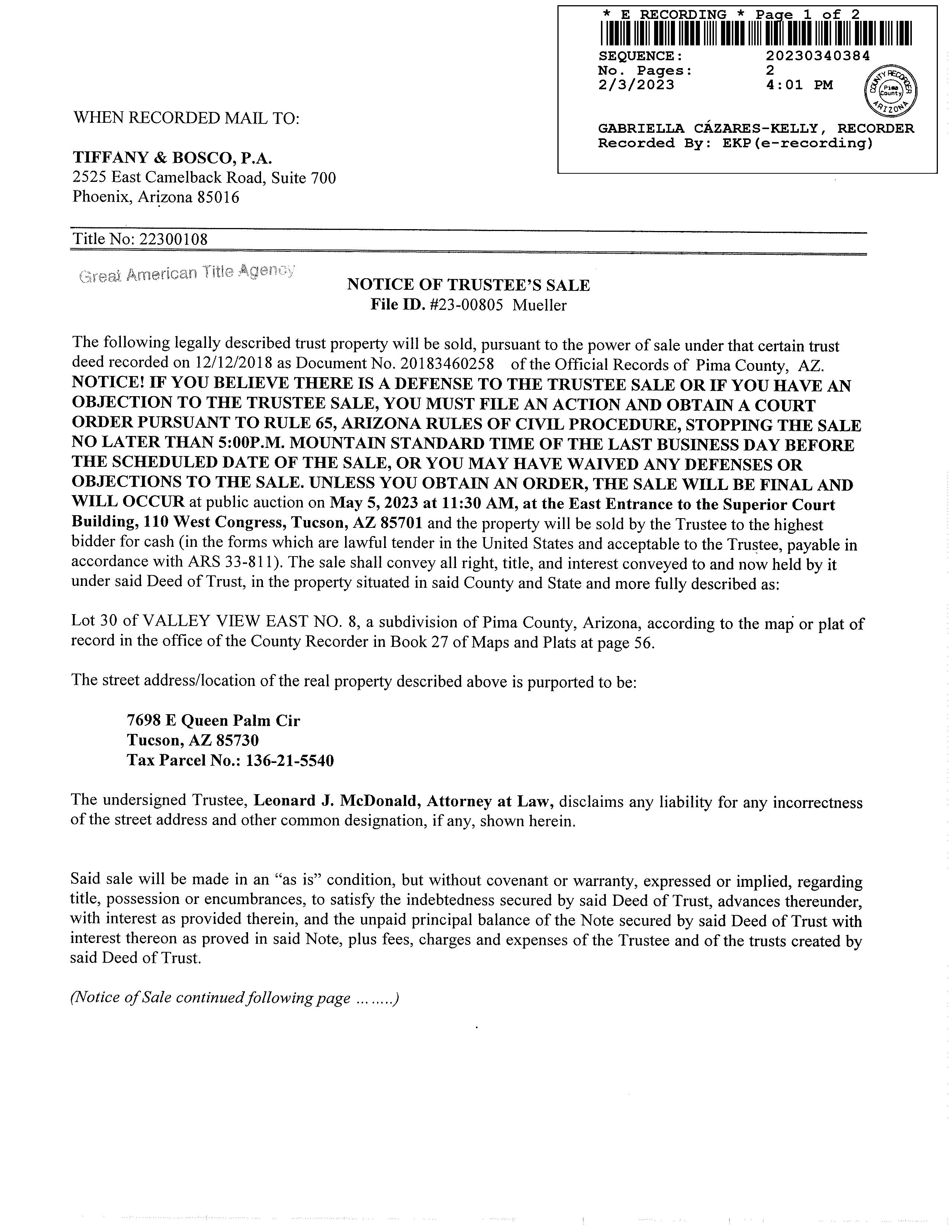 Mailing Address : 7698 E Queen Palm Cir, Tucson AZ 85730-3419 C066