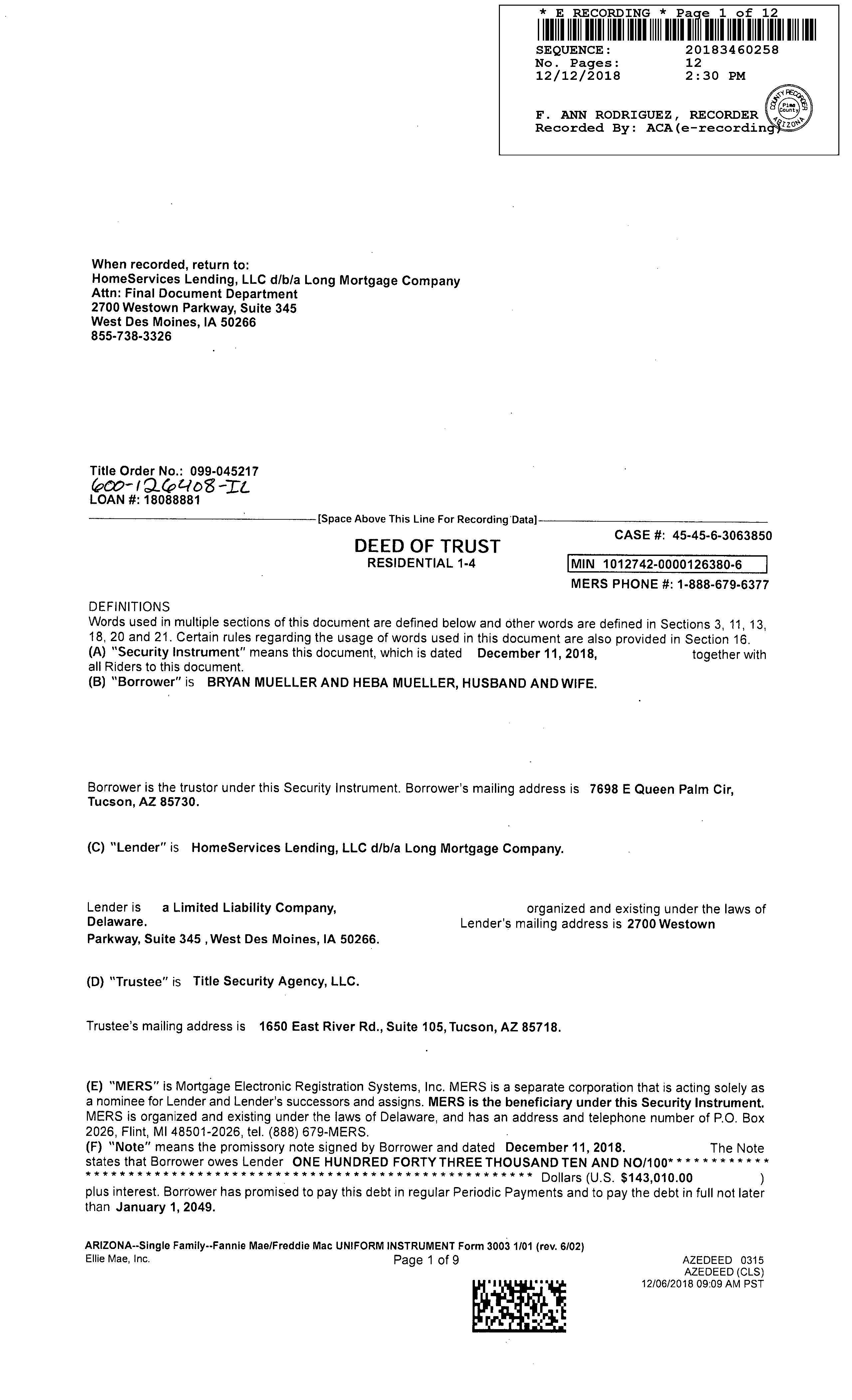Recording/Sale Date : 12/12/2018 / 12/11/2018 1st Mtg Amount/Type : $143,010 / Va Sale Price : $140,000 1st Mtg Document # : 3460258 Document # : 3460257 1st Mtg Term : 30 Deed Type : Warranty Deed Price Per SqFt : $111.38 Title Company : Long Title Agcy Inc Lender : Long Mtg Co Seller Name : Davis Michele Prior Sale Information Prior Rec/Sale Date : 03/24/2006 / 03/00/2006 Prior Lender : Meritage Mtg Prior Sale Price : $143,500 Prior 1st Mtg Amt/Type : $143,500 / Conv Prior Doc Number : 12768-6343 Prior 1st Mtg Rate/Type : $7.25 / Adjustable Int Rate Loan Prior Deed Type : Warranty Deed Customer Name : Lisa Mrazek Customer Company Name : First American Title Insurance Company Prepared On : 04/16/2024 © 2024 CoreLogic. All rights reserved