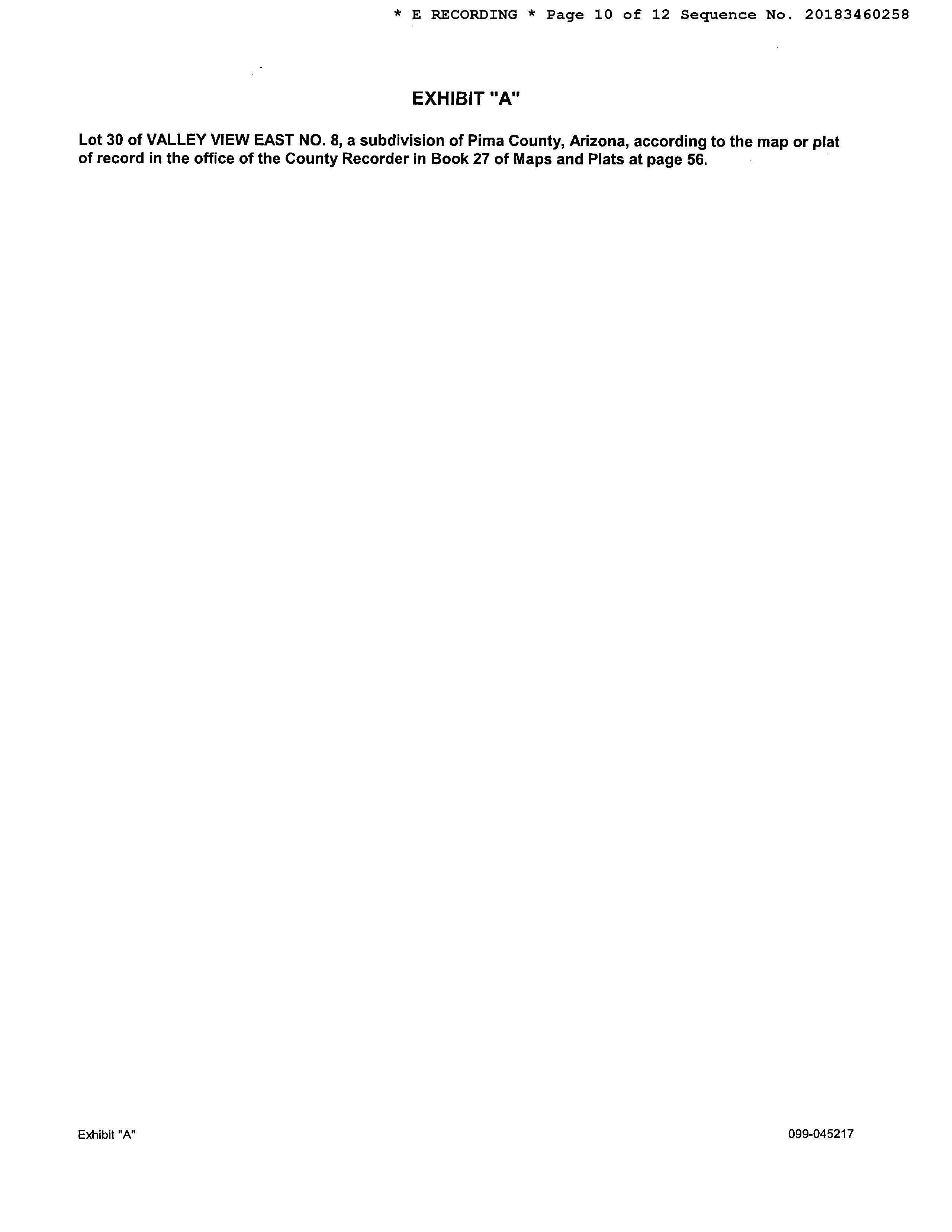Legal Description : Valley View East No 8 Lot 30 County : Pima, Az APN : 136-21-5540 Census Tract