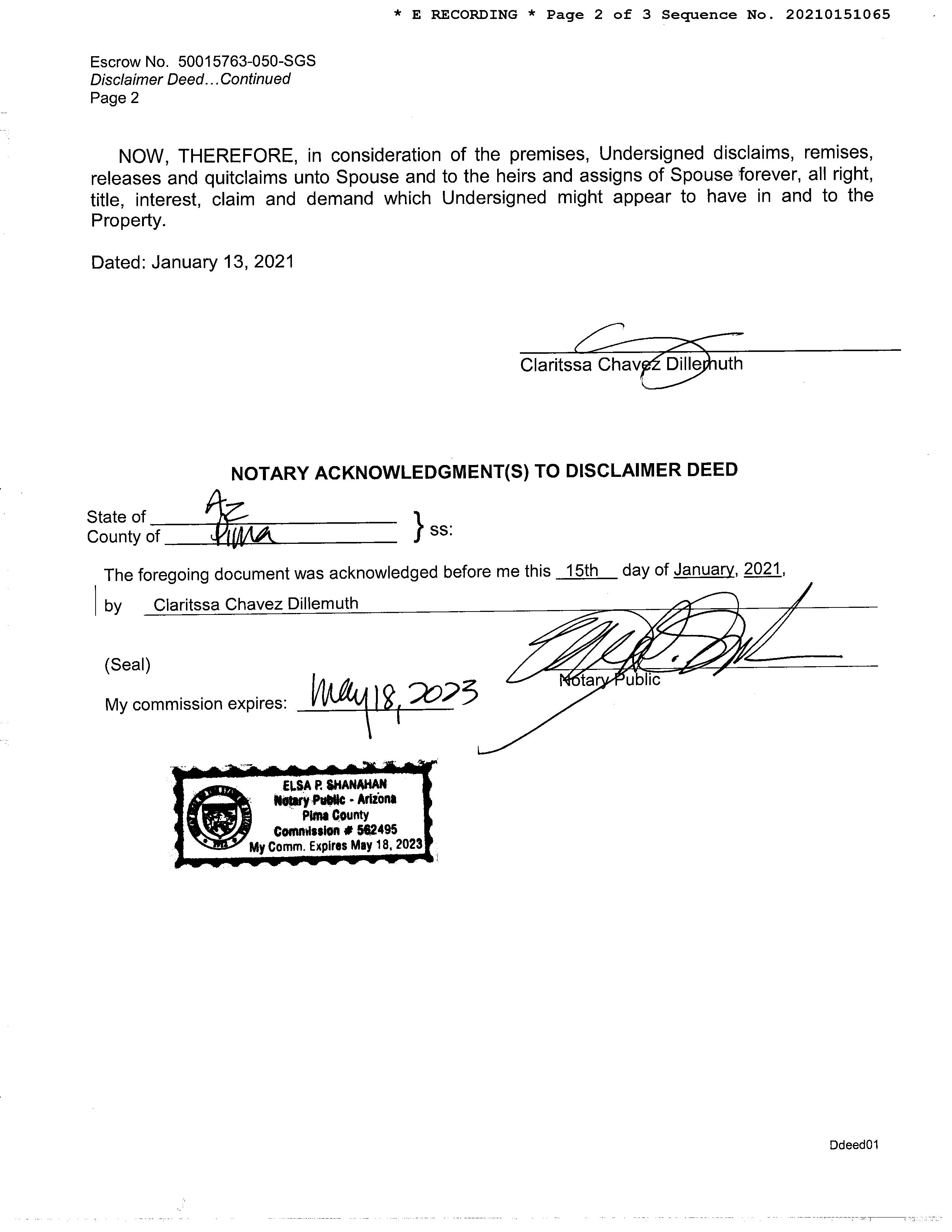 Deed Type : Disclaimer Deed