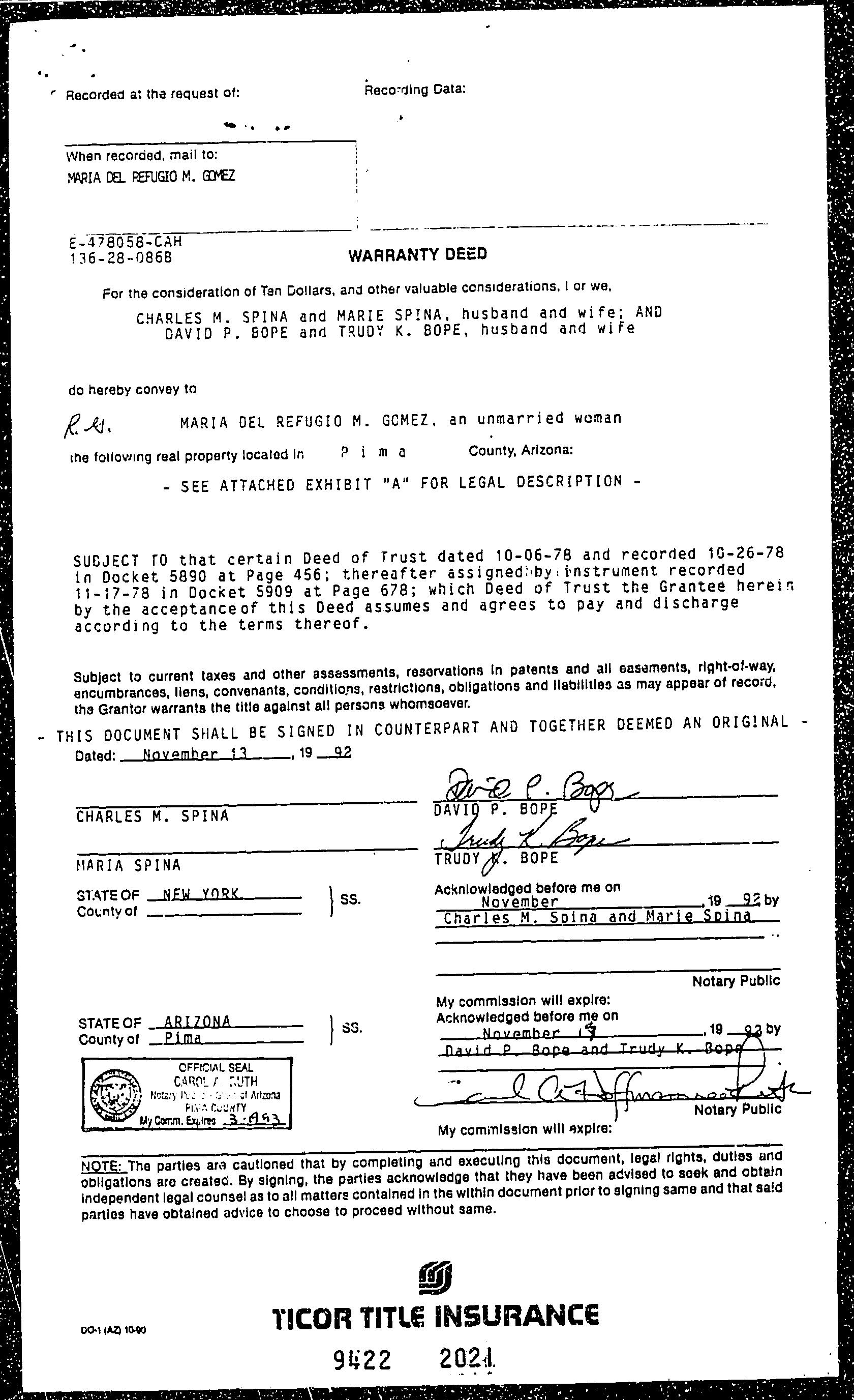 MAIL: GOMEZ JIMMY M & GOMEZ RICHARD M JT/RS 7818 E BOOJUM PL TUCSON AZ 85730-4336