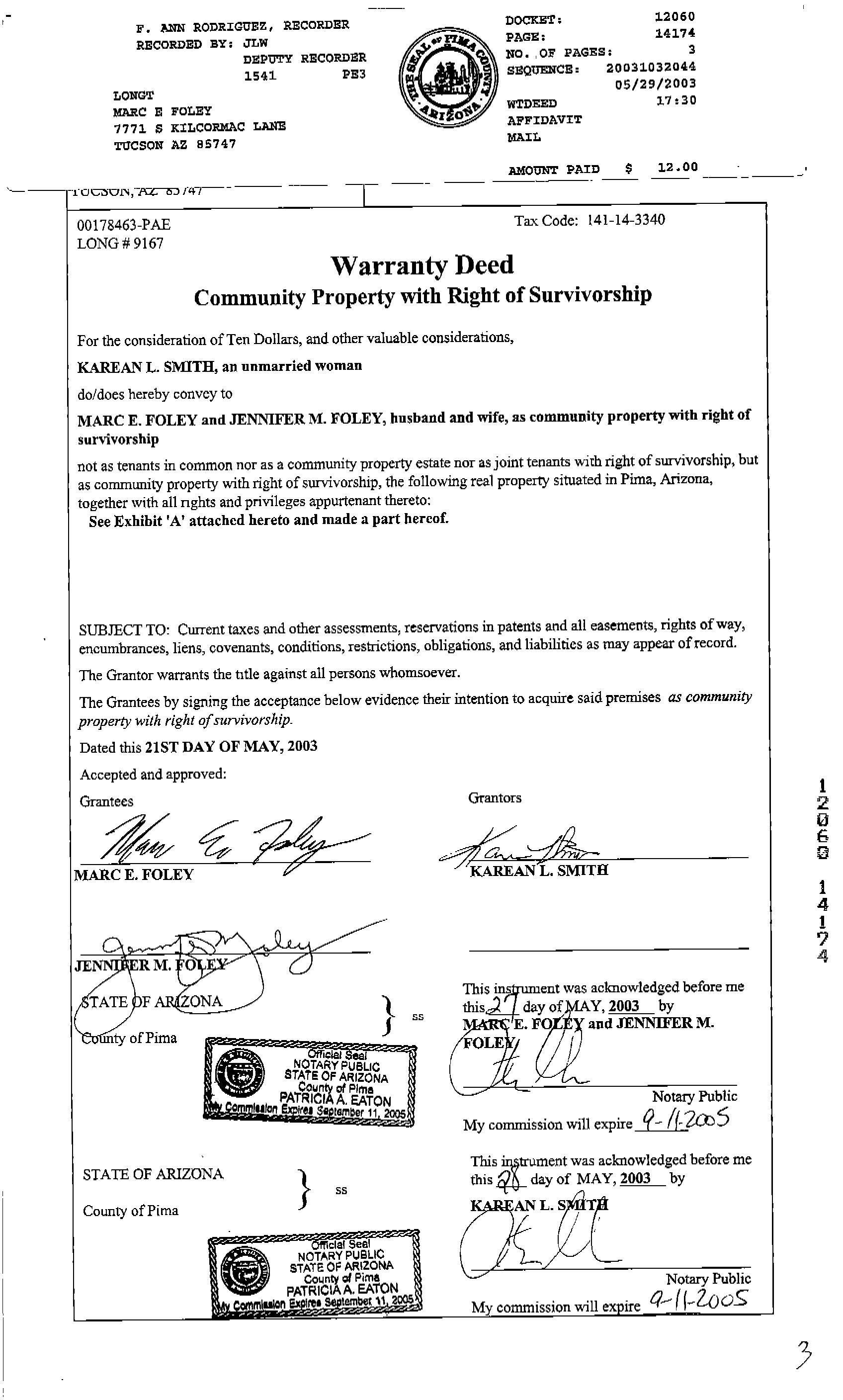 OWNER: FOLEY MARC E & JENNIFER M CP/RS