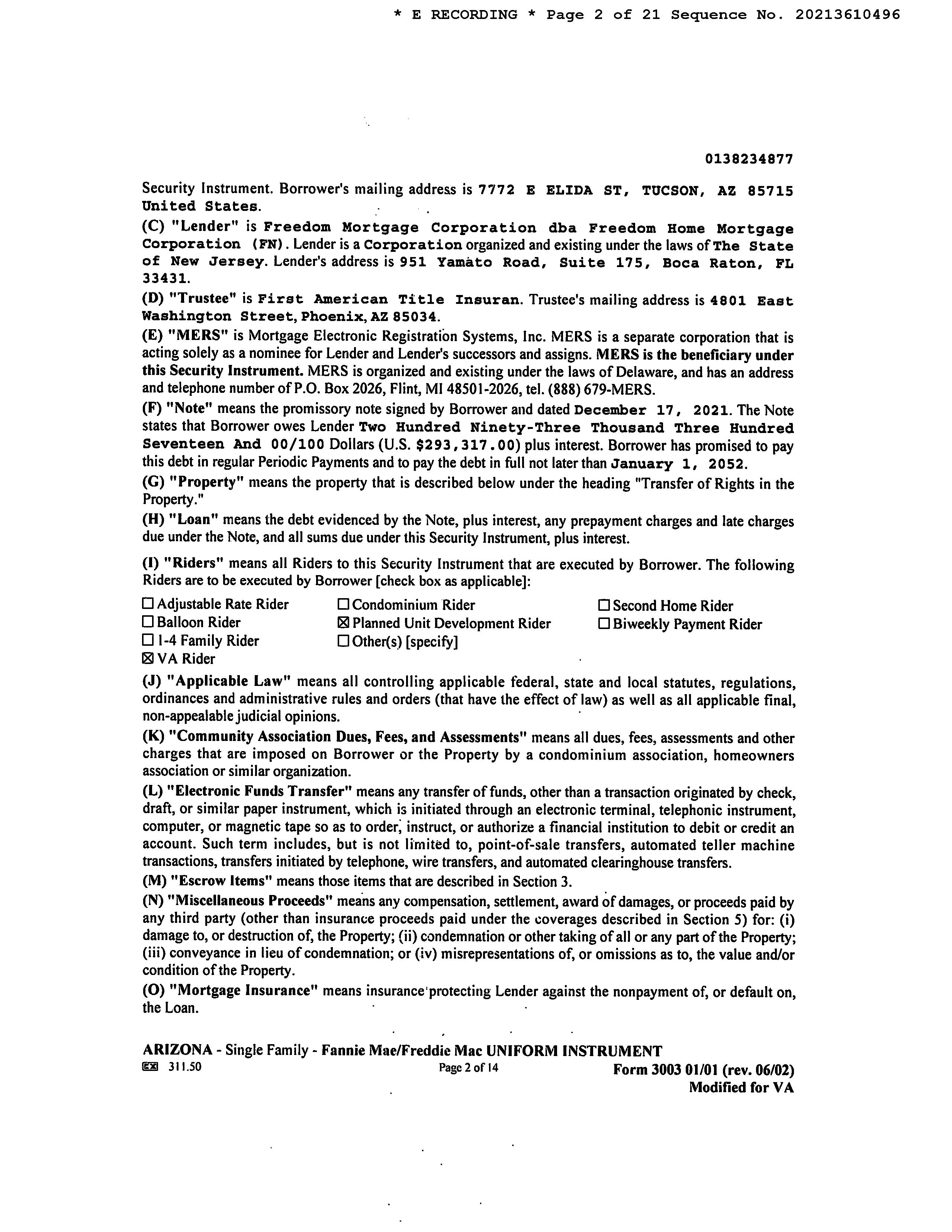 Mailing Address : 7772 E Elida St, Tucson AZ 85715-5007 C051