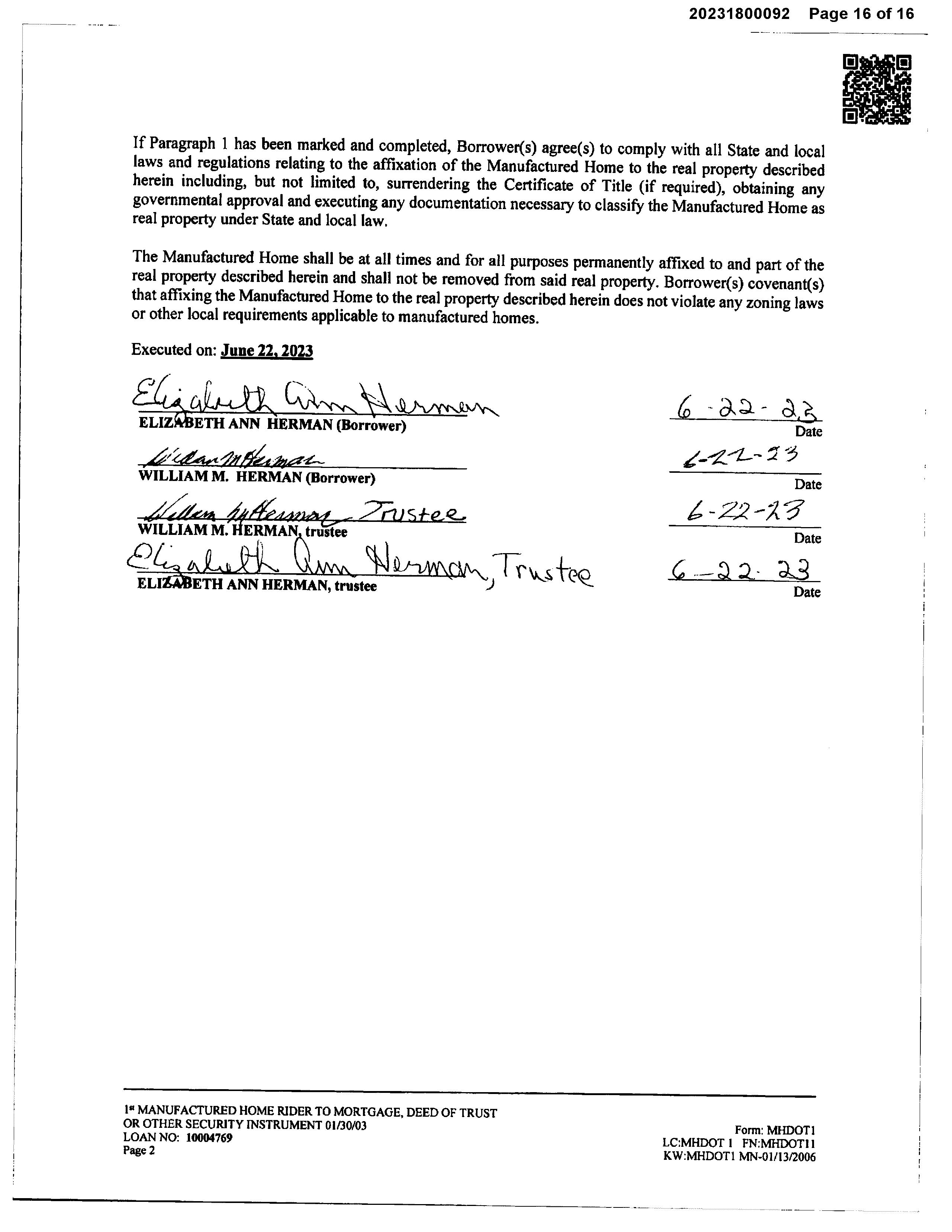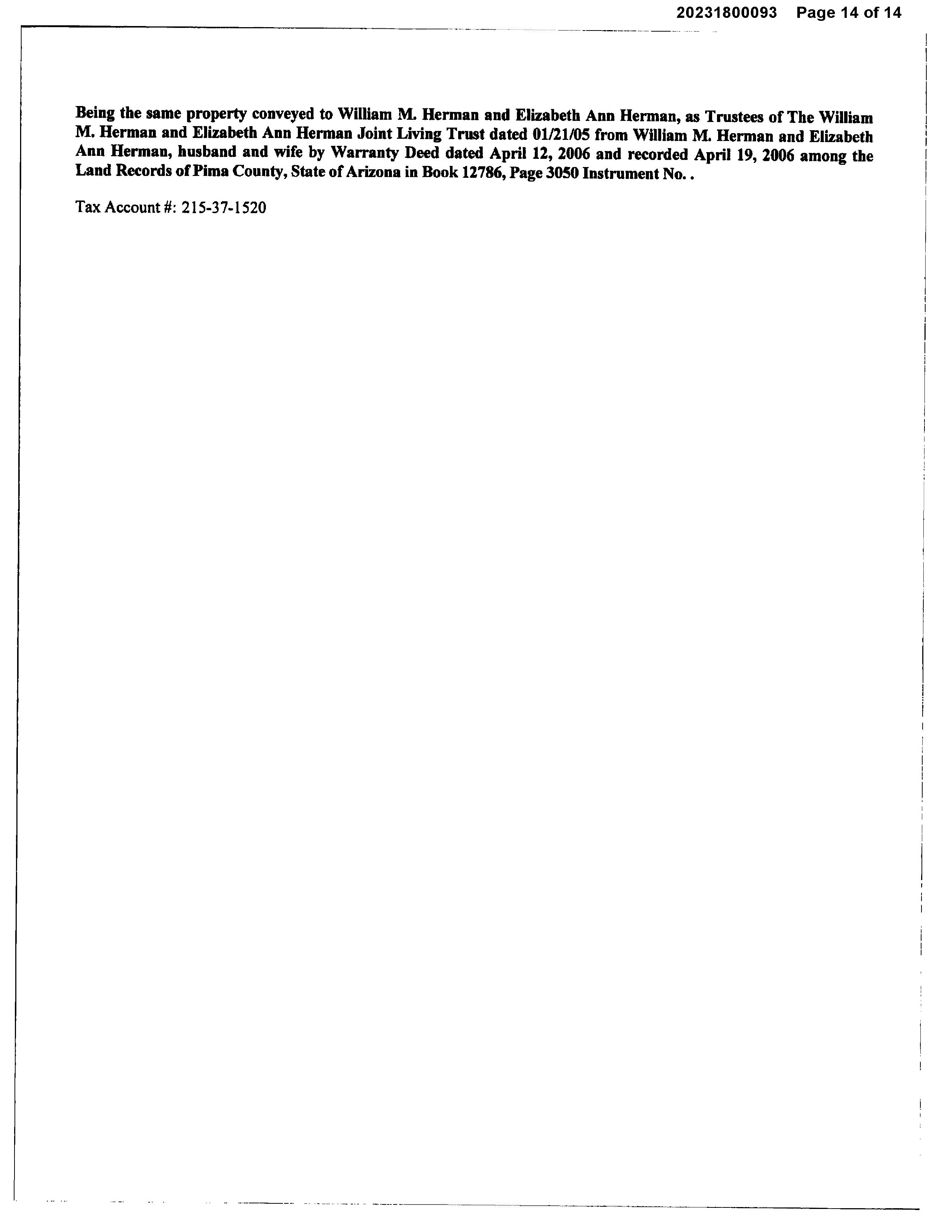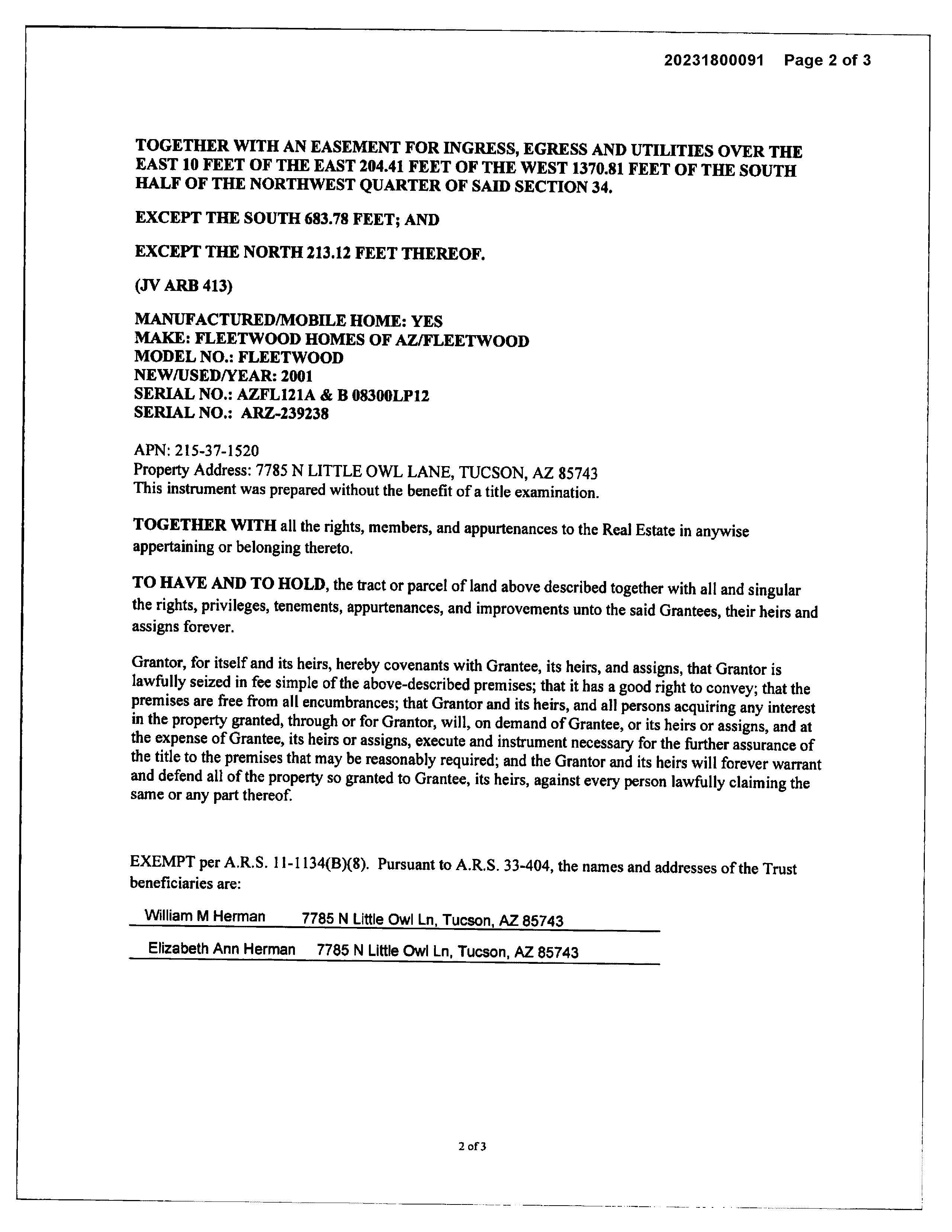 OWNER: WILLIAM M HERMAN AND ELIZAB AFFIDAVIT 2023 1800091 06/29/2023