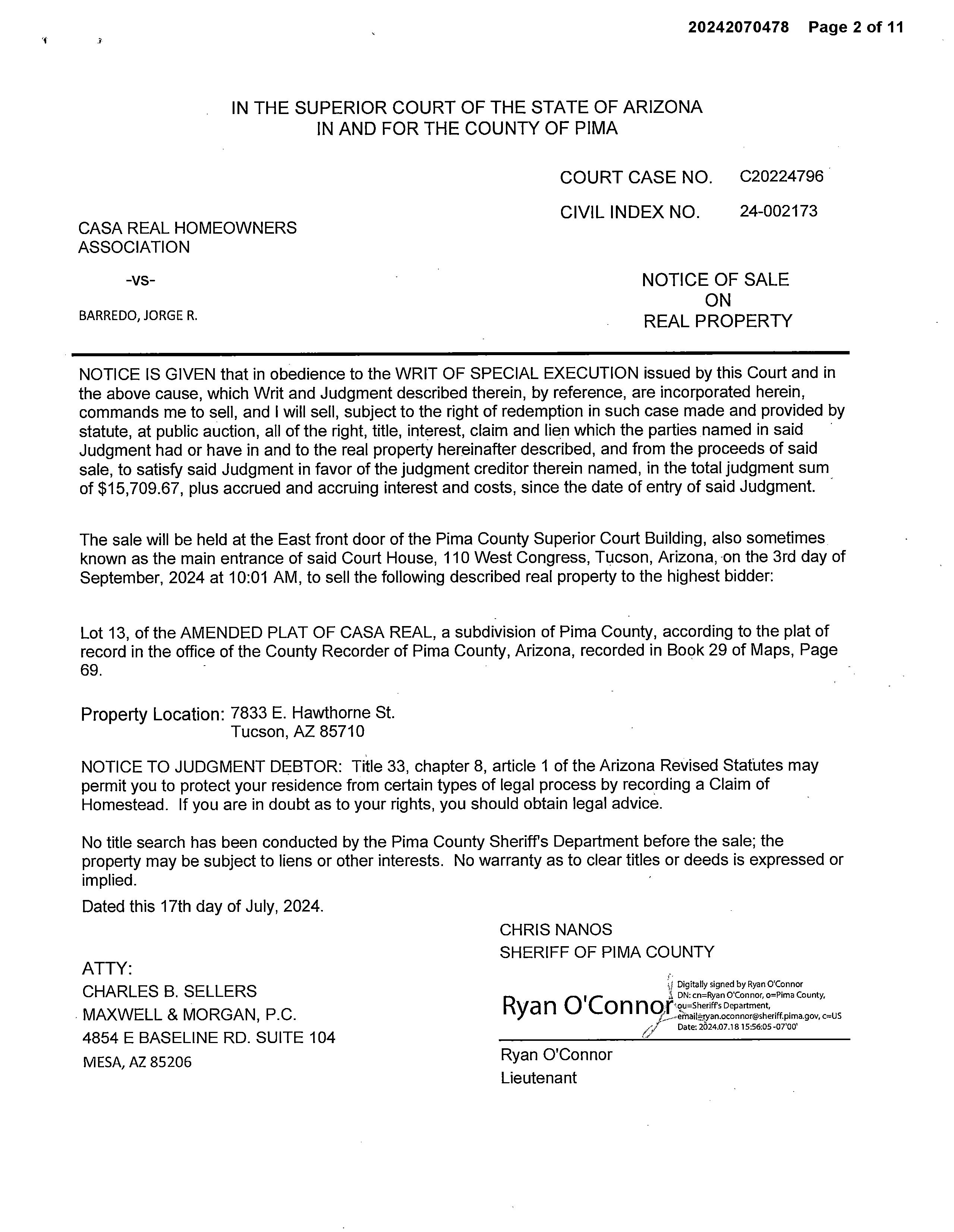 Note: None of the attached information given is in any way complete or sufficient for Bidding on these properties at auction and does not show lien priority.