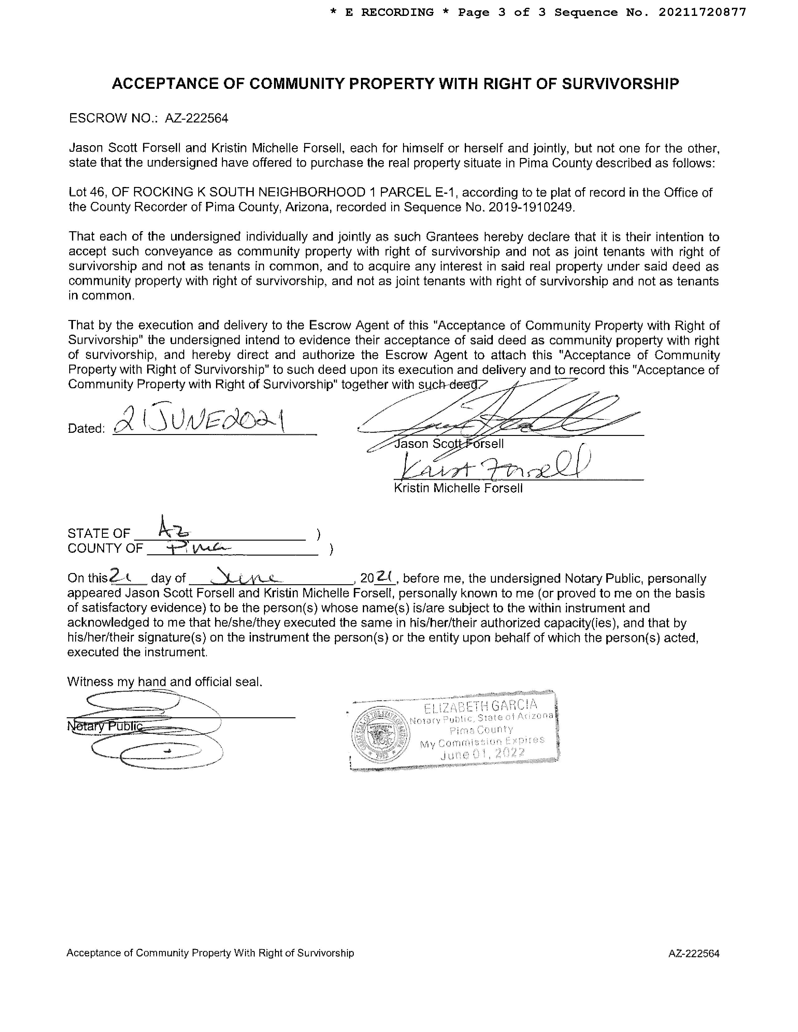 Owner Name: Forsell Jason Scott /Kristin Michelle C APN / Alternate APN: 205-95-3720 / Deed Type: Special Warranty Deed
