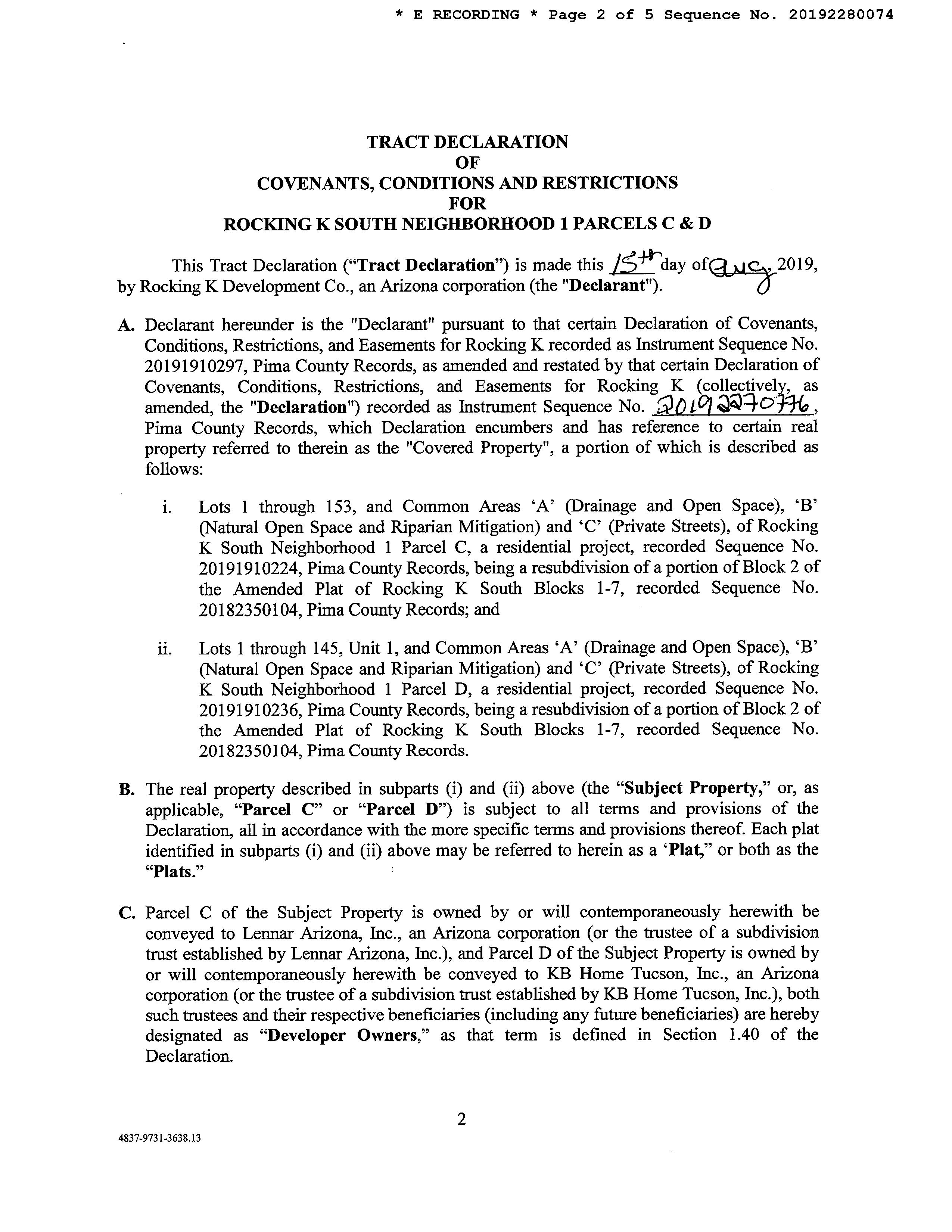Subdivision : Rocking K South Nbrhd 1 Prcl E-
