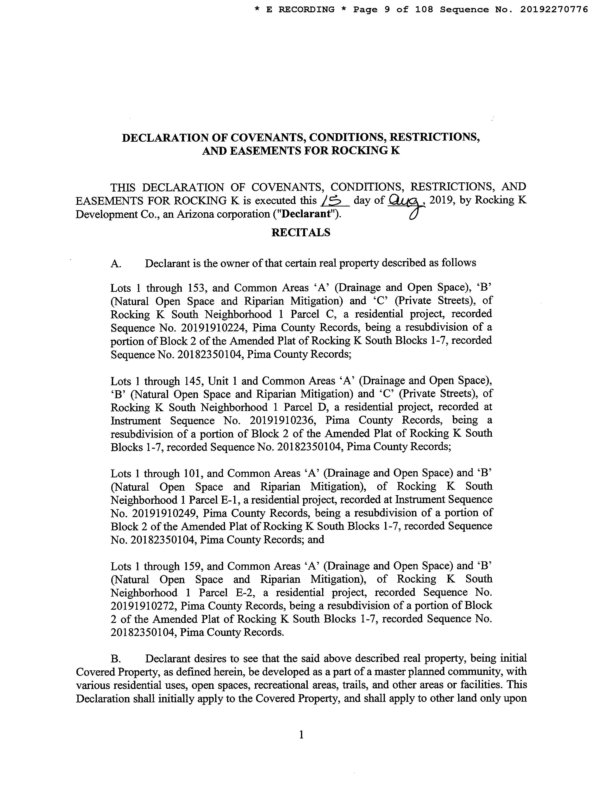 Covenants, Conditions & Restrictions