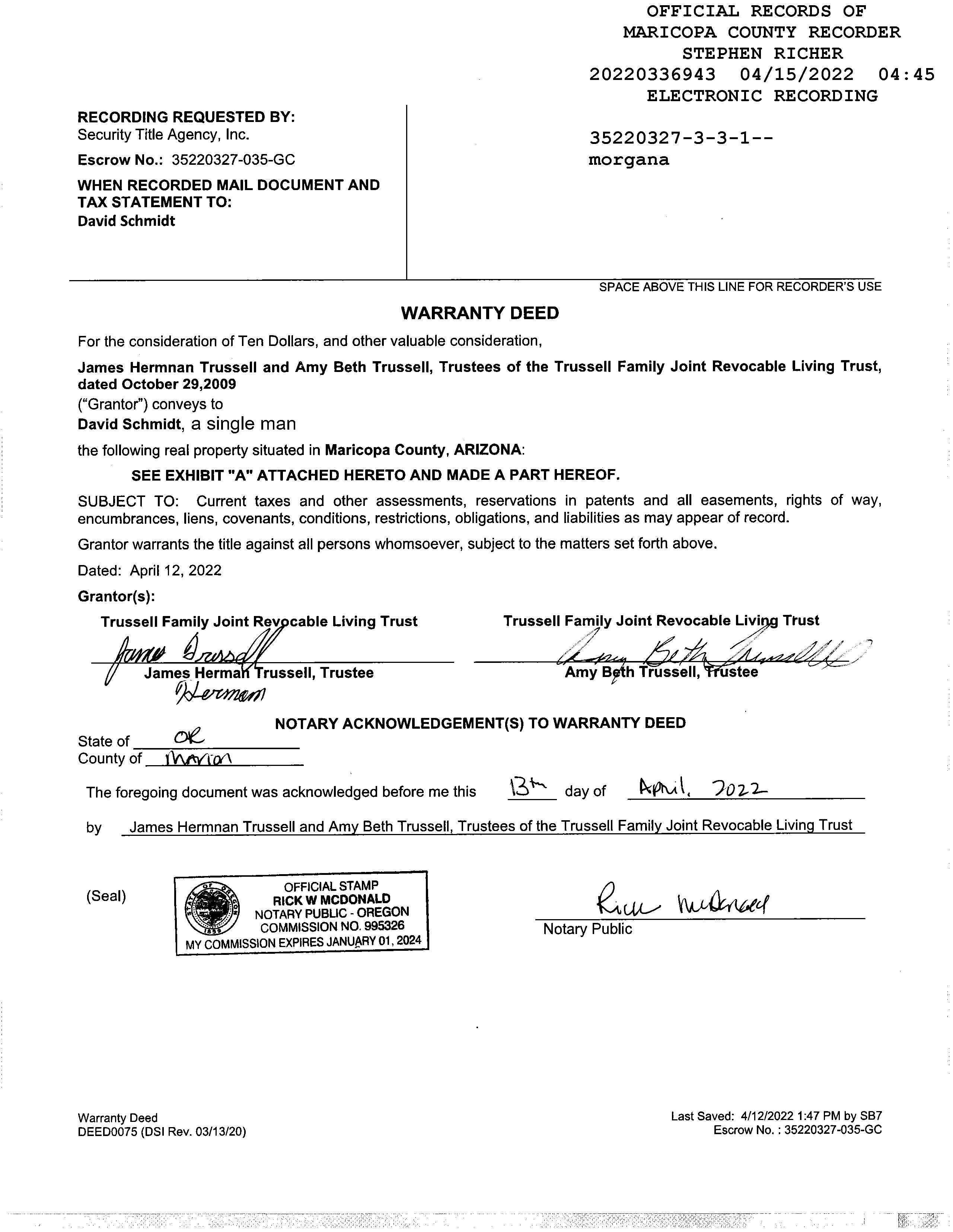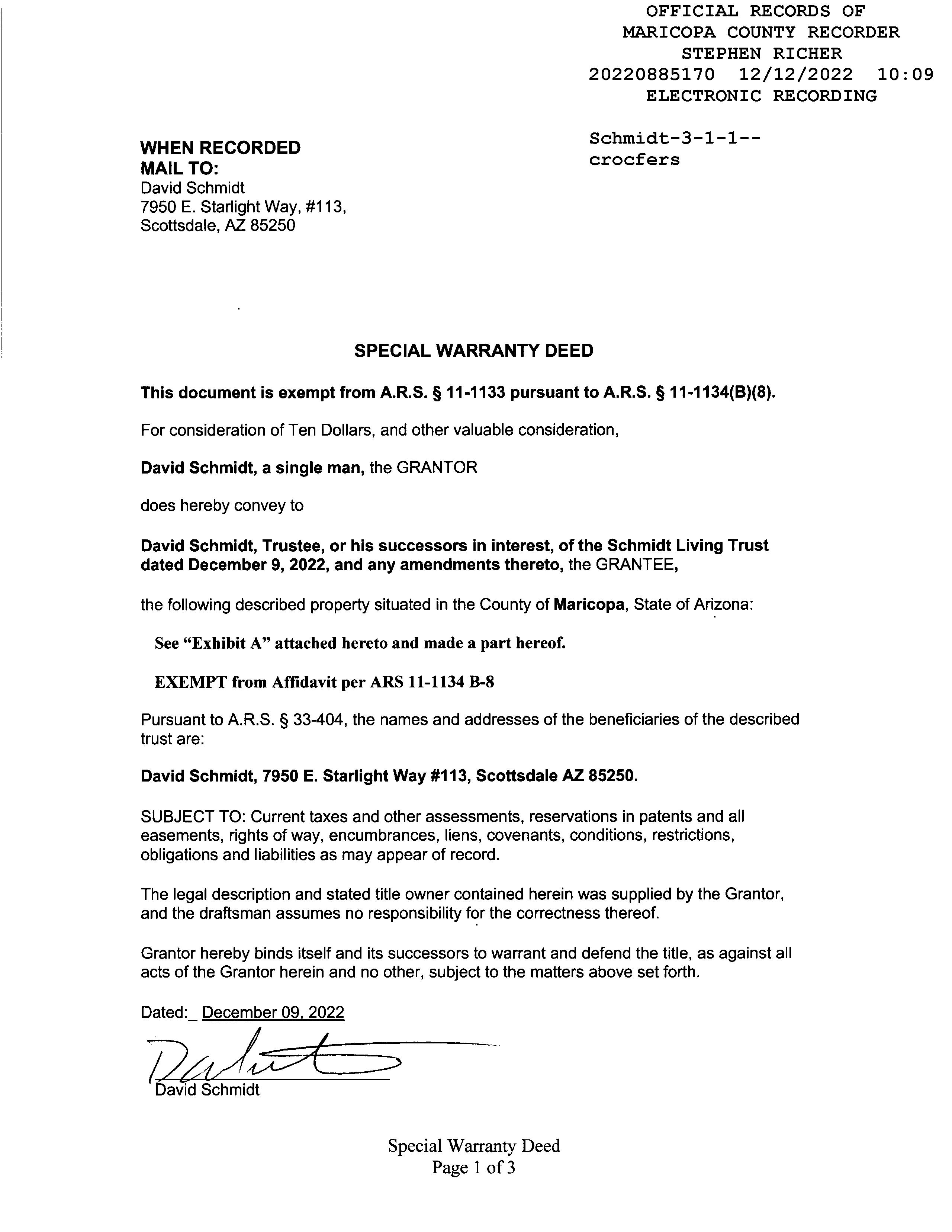 Owner Name : Schmidt Living Trust Mailing Address : 7950 E Starlight Way Unit 113, Scottsdale AZ 85250-6127 C045