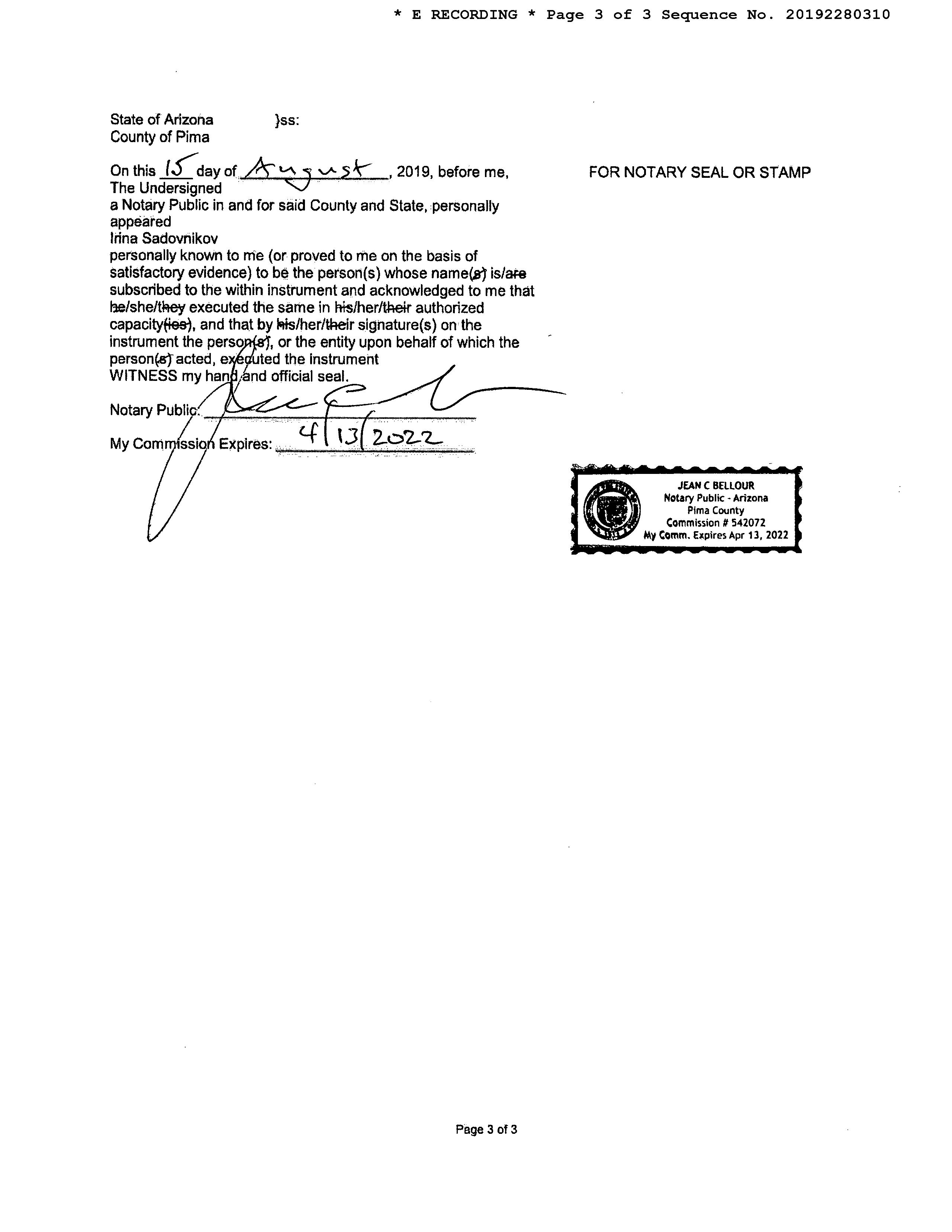 Mailing Address : 7959 N Jewelflower Dr, Tucson AZ 85741-4643 C019