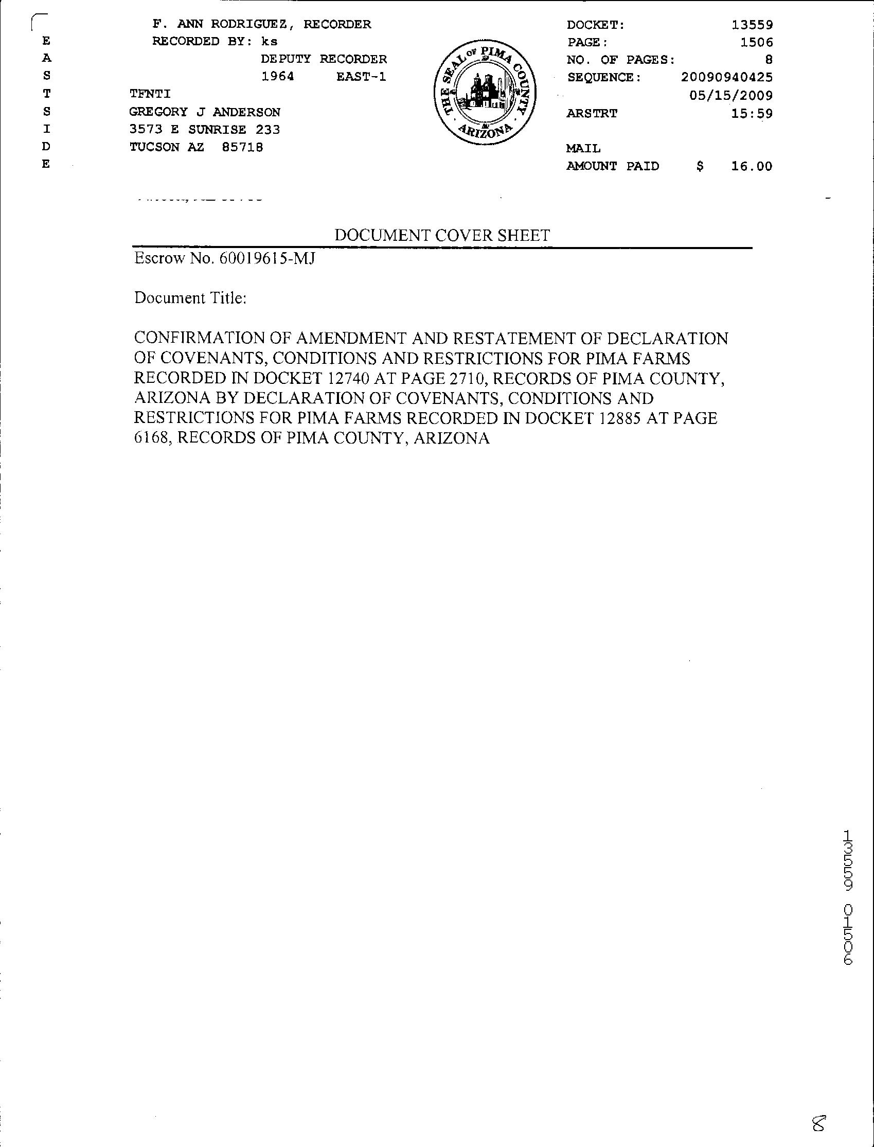 FIRST AMERICAN - SOUTHERN ARIZONA ADMIN OFFICE 520.885.1600 tsa-administration@firstam.com First American Title Insurance Company, and the operating divisions thereof, make no express or implied warranty respecting the information presented and assume no responsibility for errors or omissions. First American, the eagle logo, First American Title, and firstam.com are registered trademarks or trademarks of First American Financial Corporation and/or its affiliates. ©2024 First American Financial Corporation and/or its affiliates. All rights reserved. NYSE: FAF