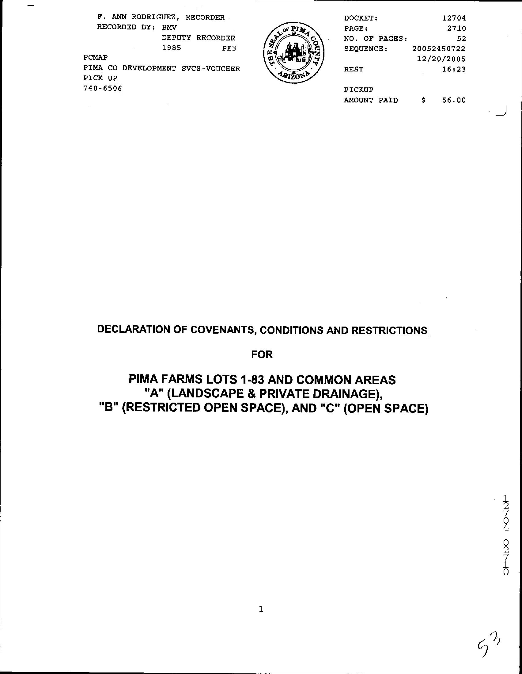 O Location Information Legal Description : Pima Farms Lot 79 Exc Mineral Rights
