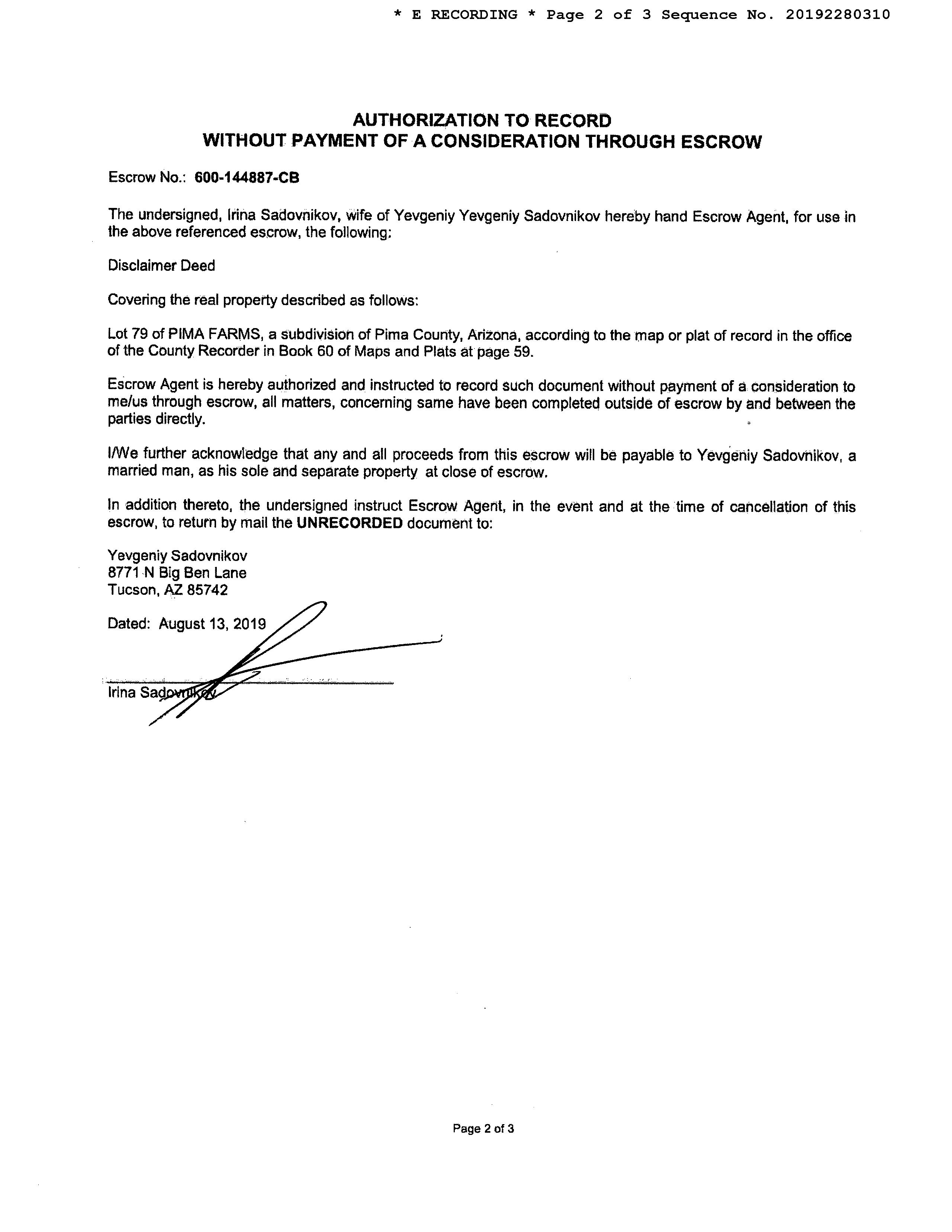 Recording/Sale Date : 08/16/2019 / 08/13/2019 Deed Type : Disclaimer Deed