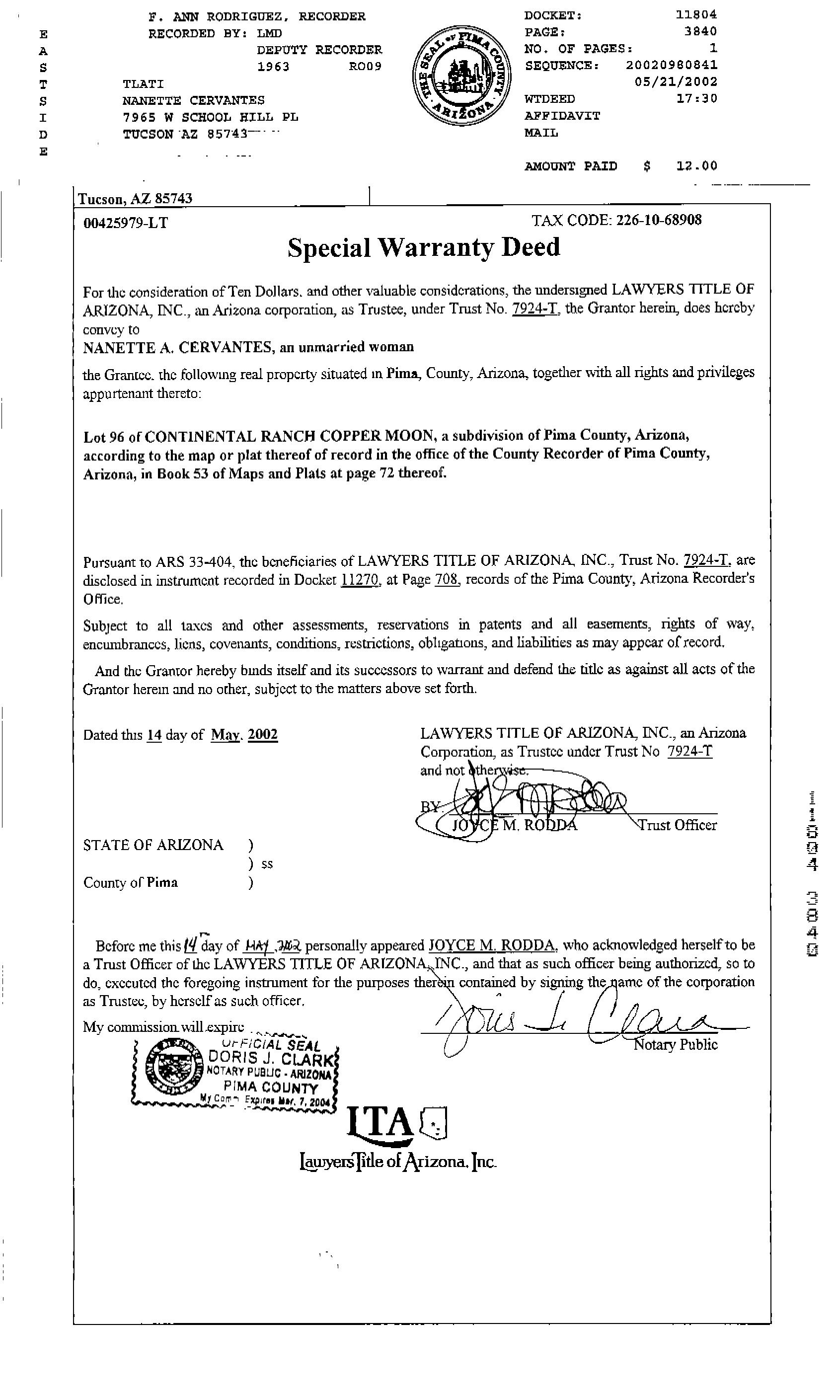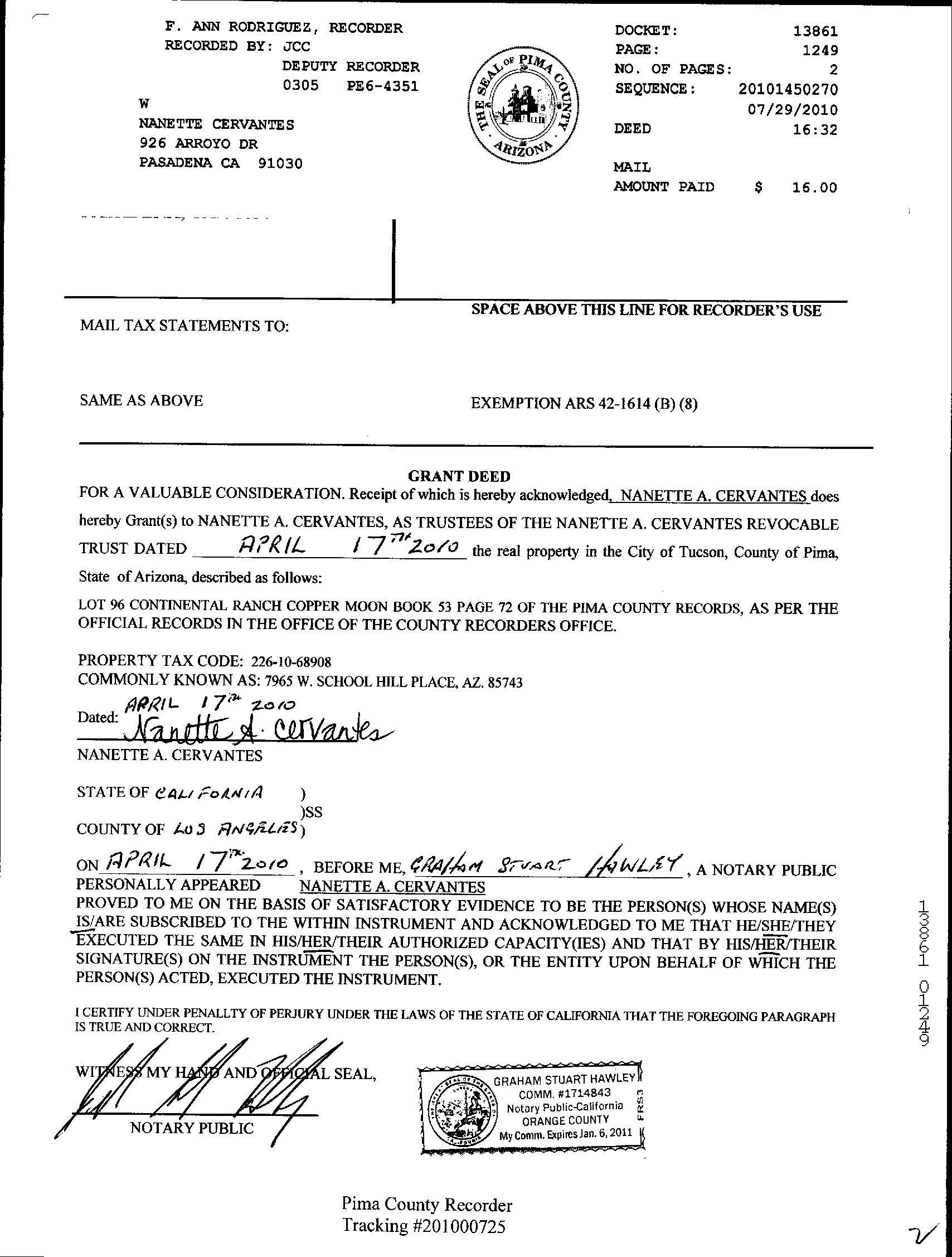 7965 W School Hill Pl Tucson AZ 85743 APN: 226-10-6890
