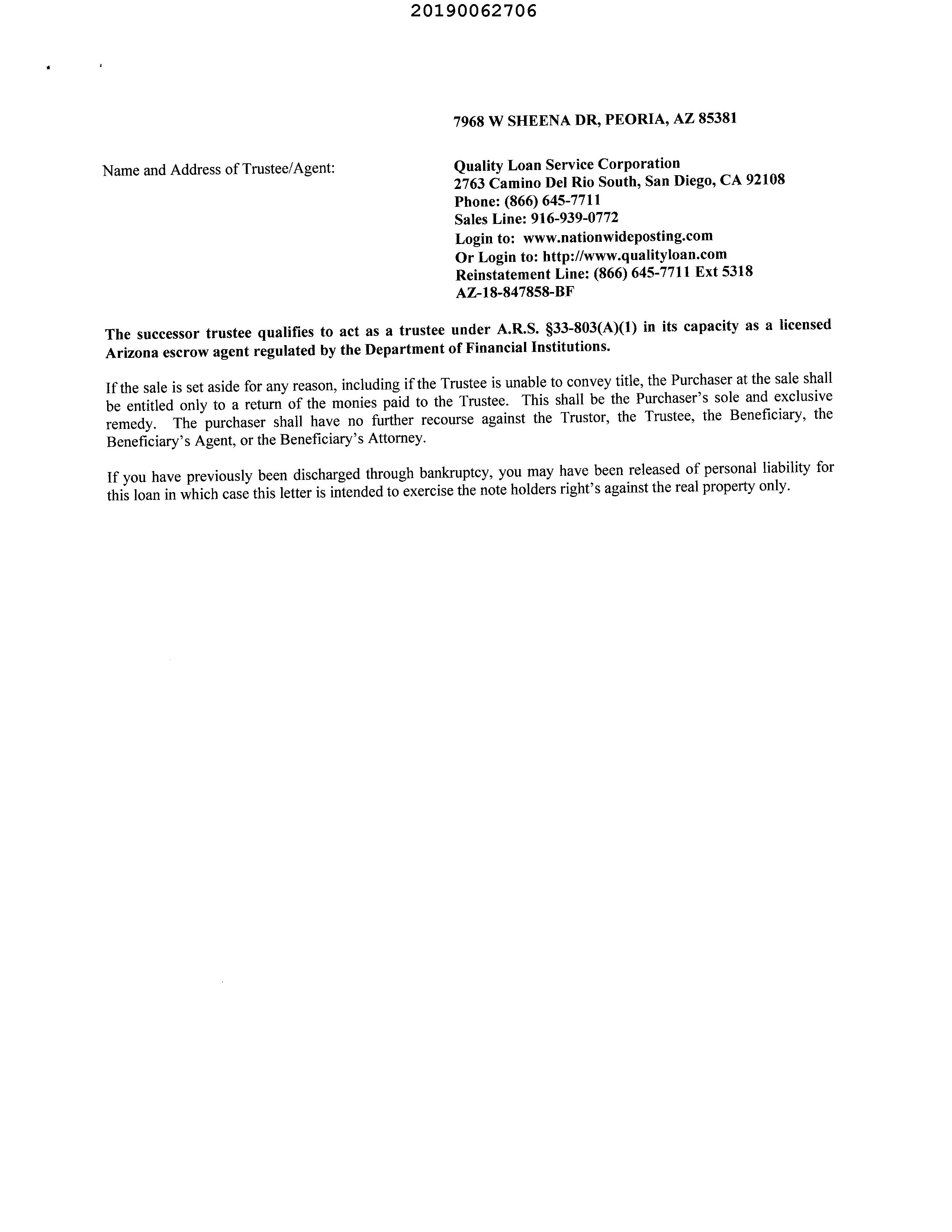 Mailing Address : 7968 W Sheena Dr, Peoria AZ 85381-4340 C032