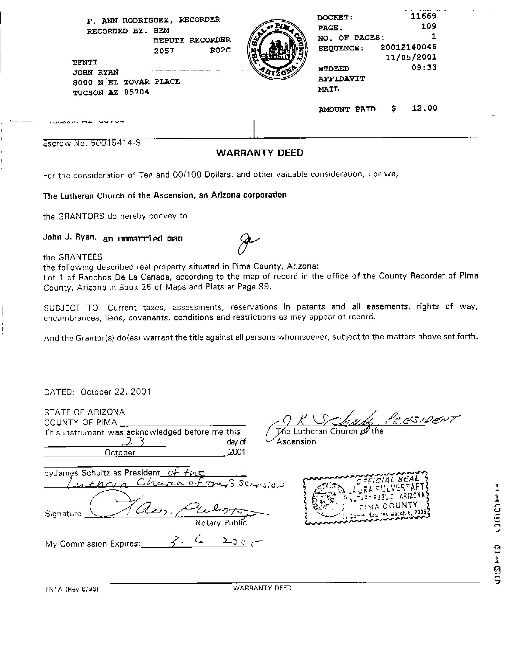 Prior Rec/Sale Date : 11/05/2001 / 10/22/2001
