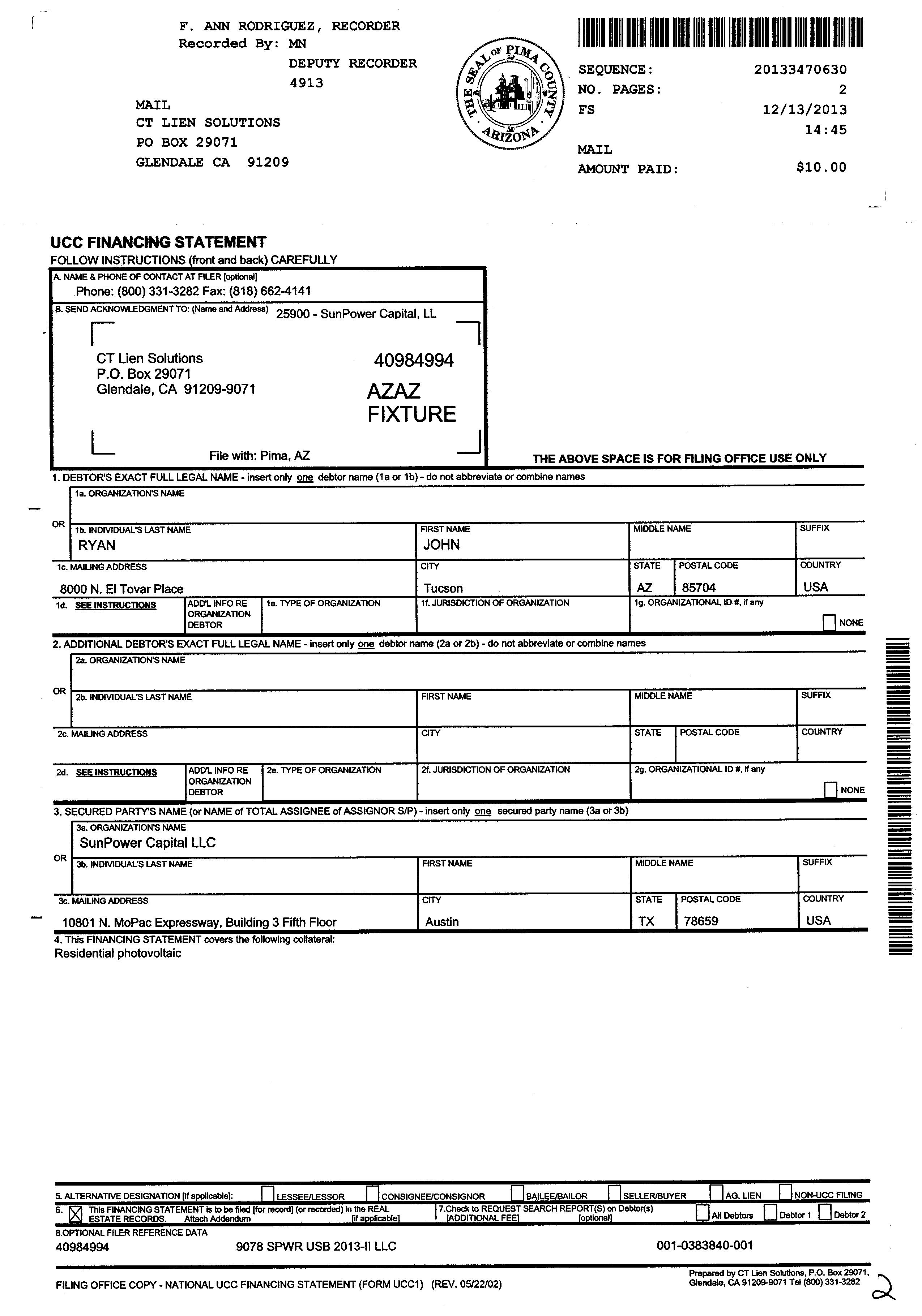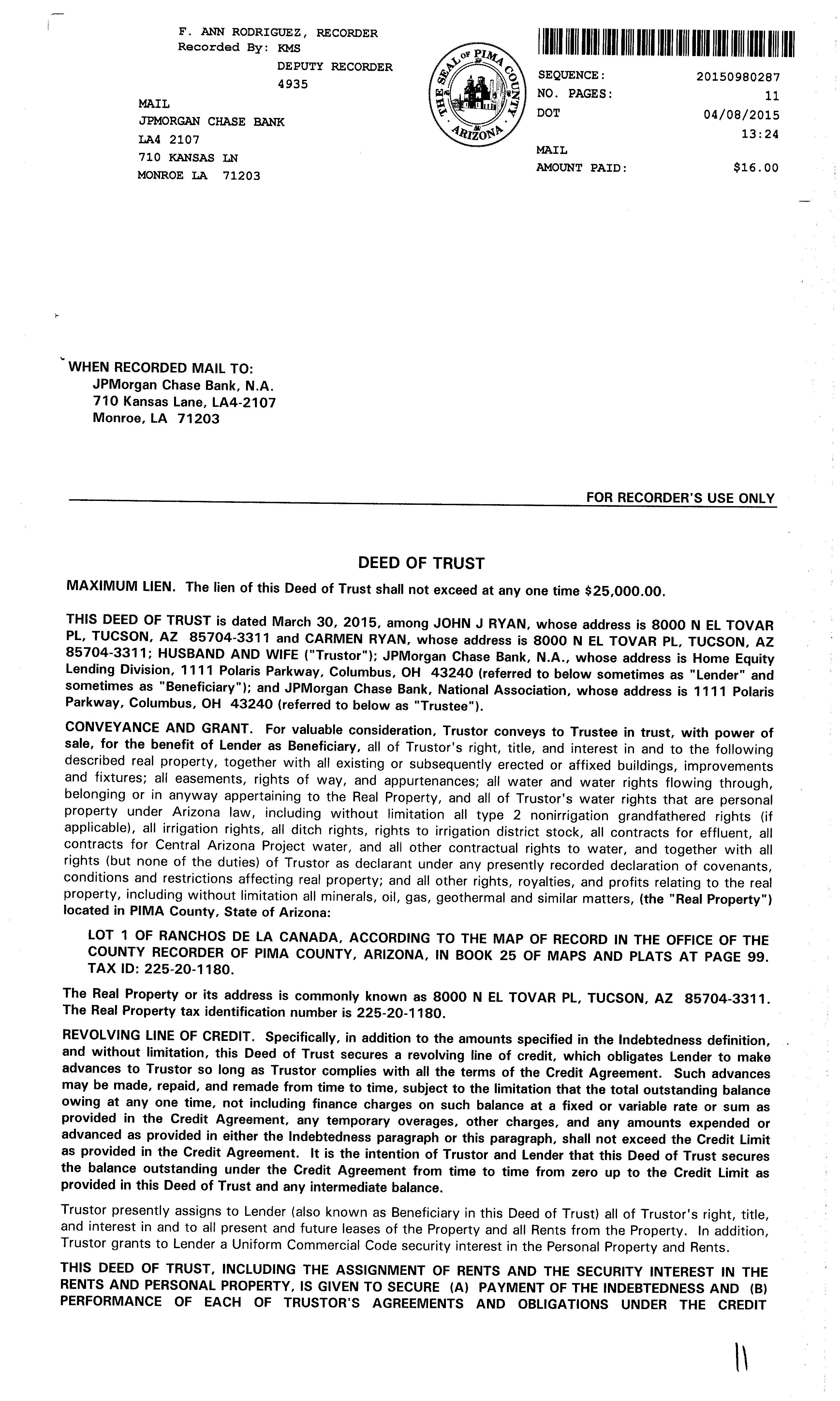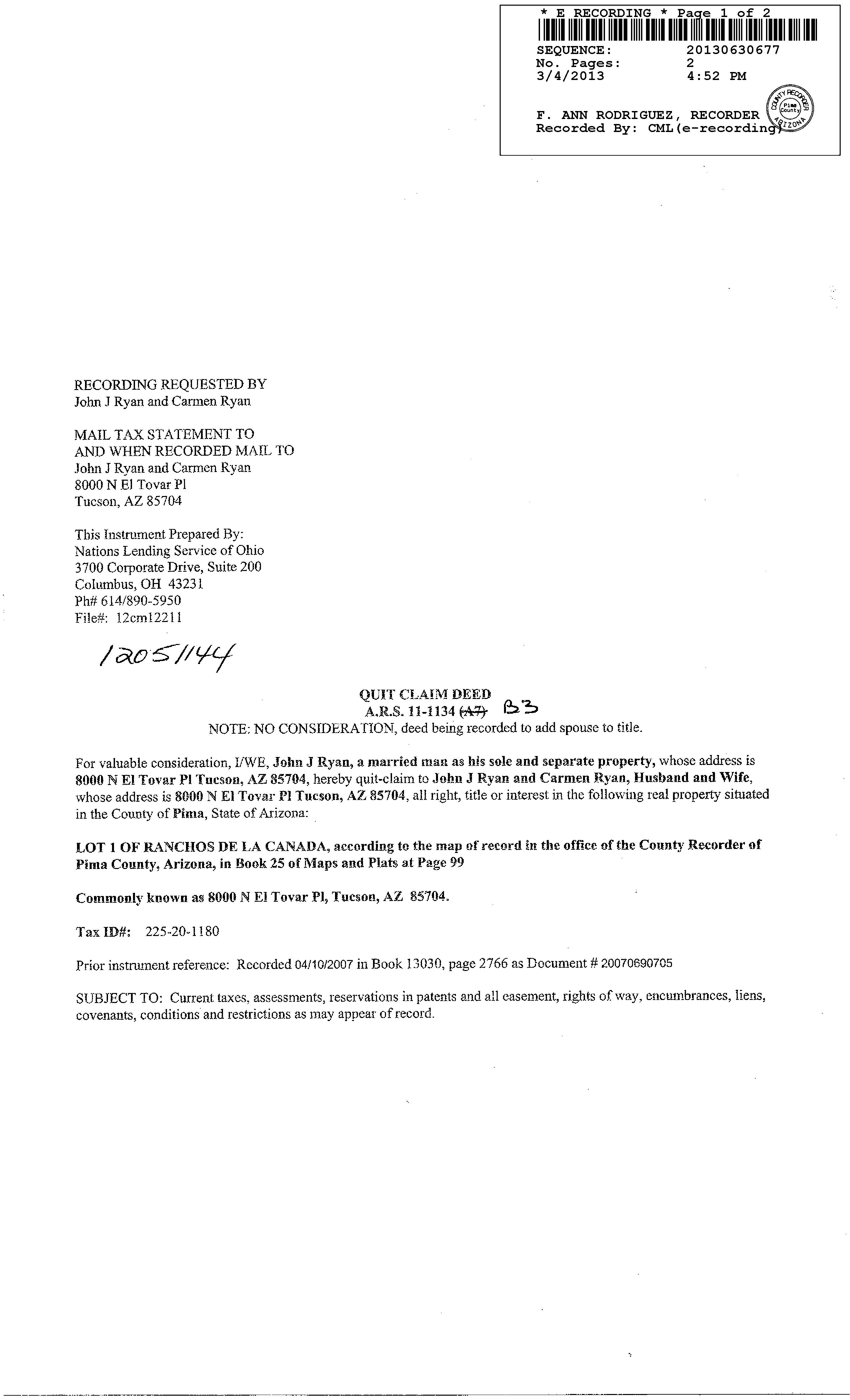 Owner Name: Ryan John J /Ryan Carmen APN / Alternate APN: 225-20-1180 / Deed Type: Agreement Of Sale