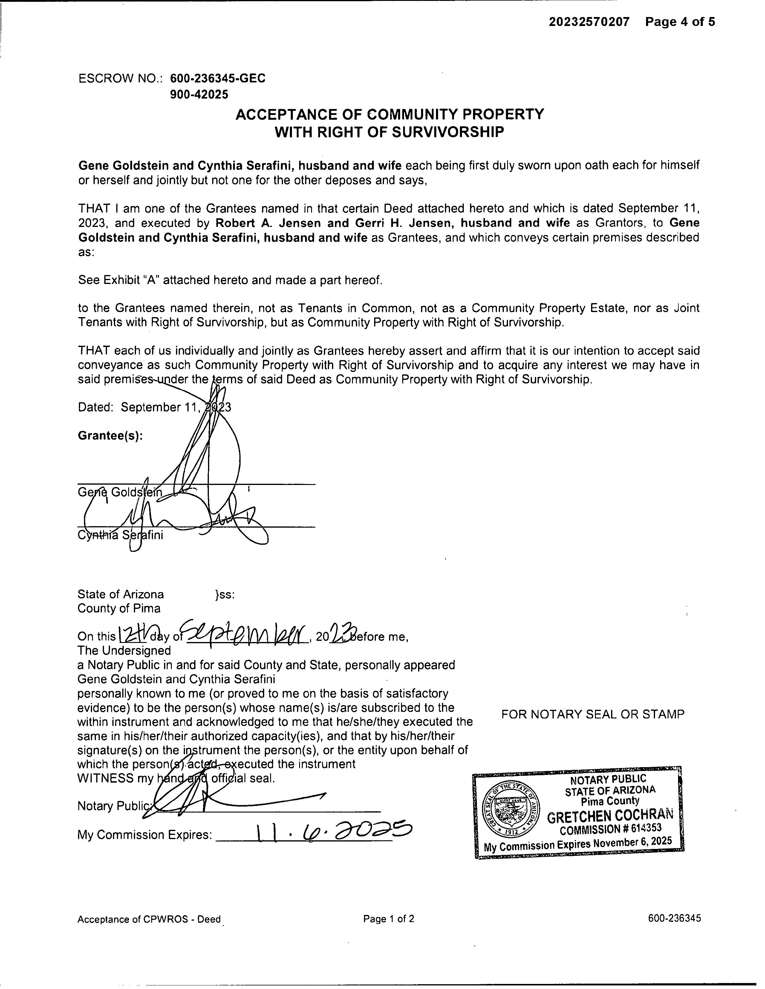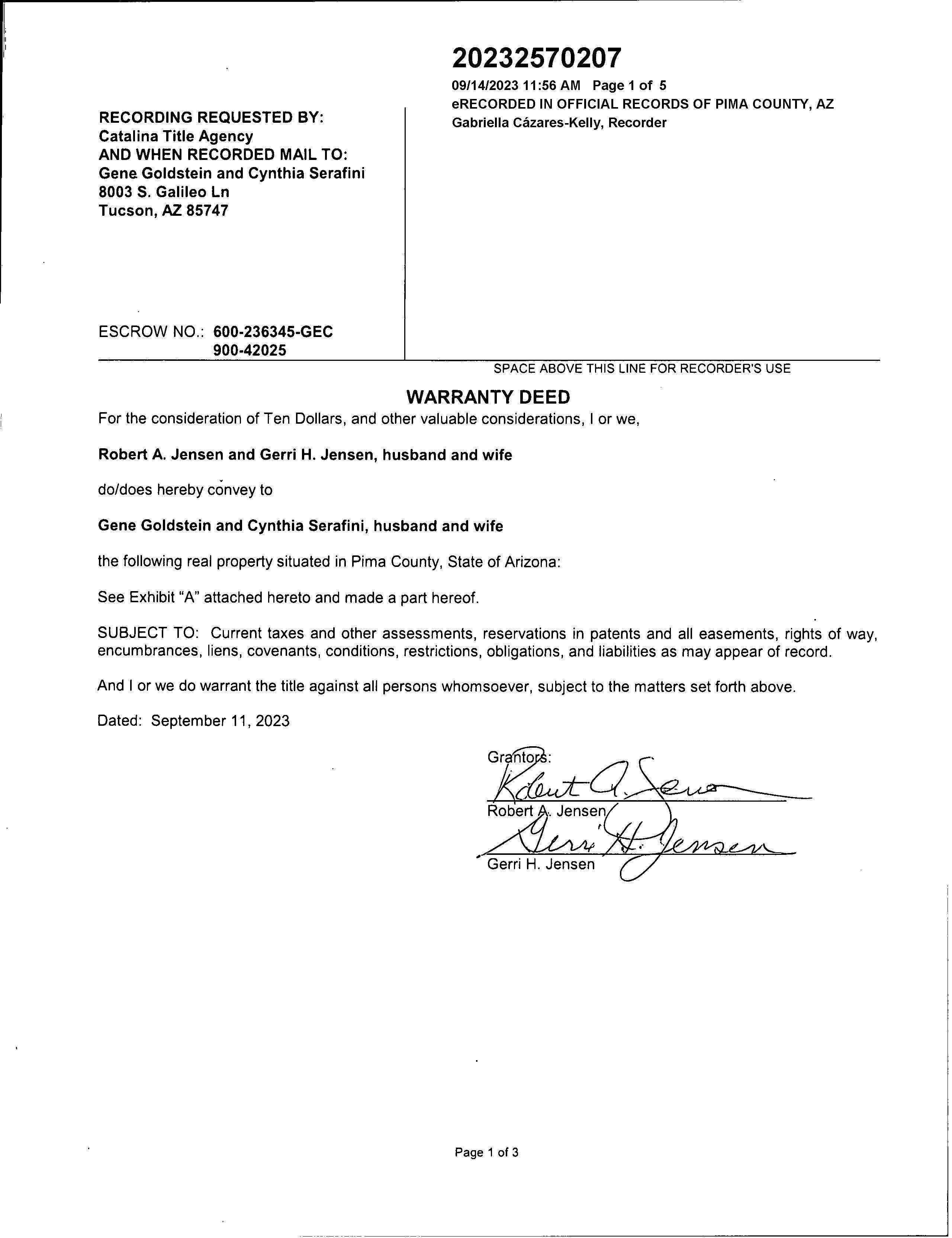 Owner Name : Goldstein Gene / Serafini Cynthia