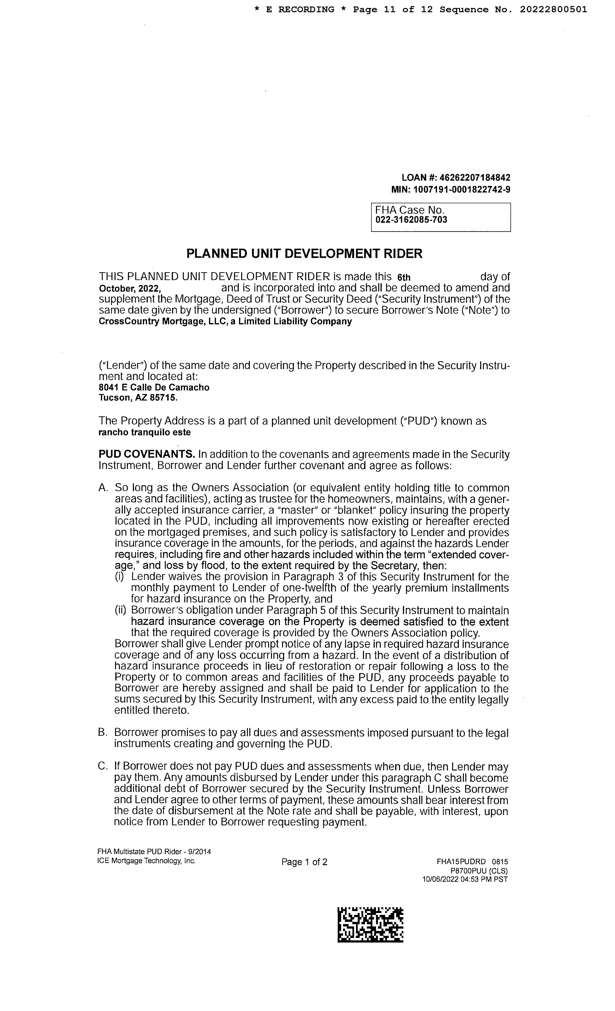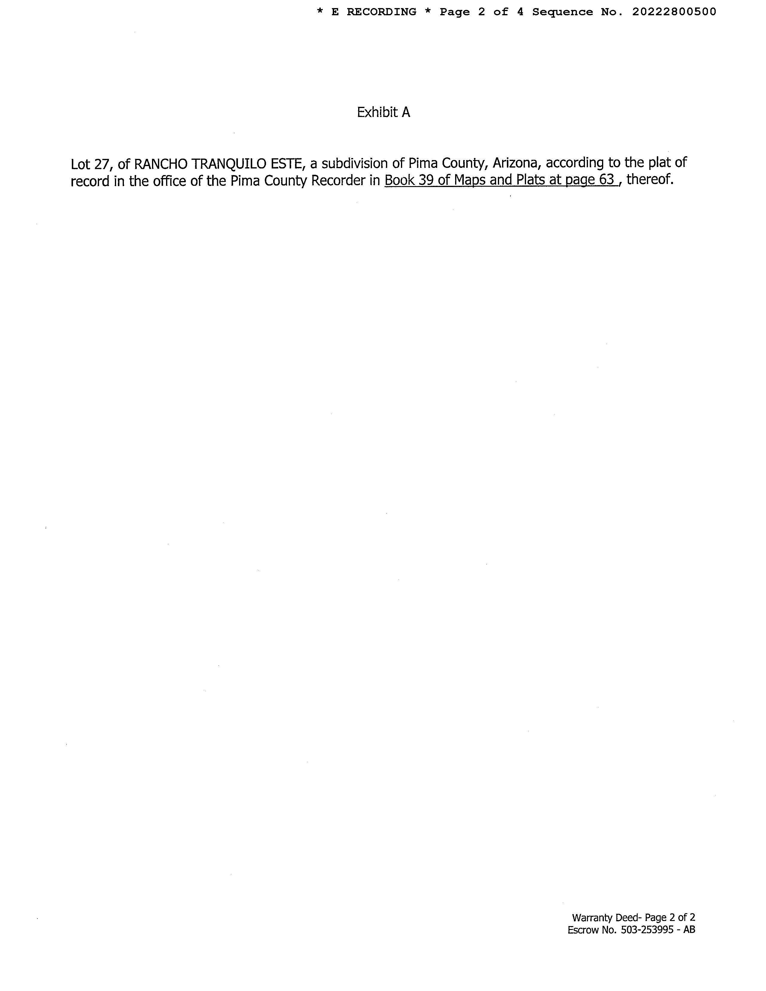 Subject Property : 8041 E Calle De Camacho Tucson AZ 85715