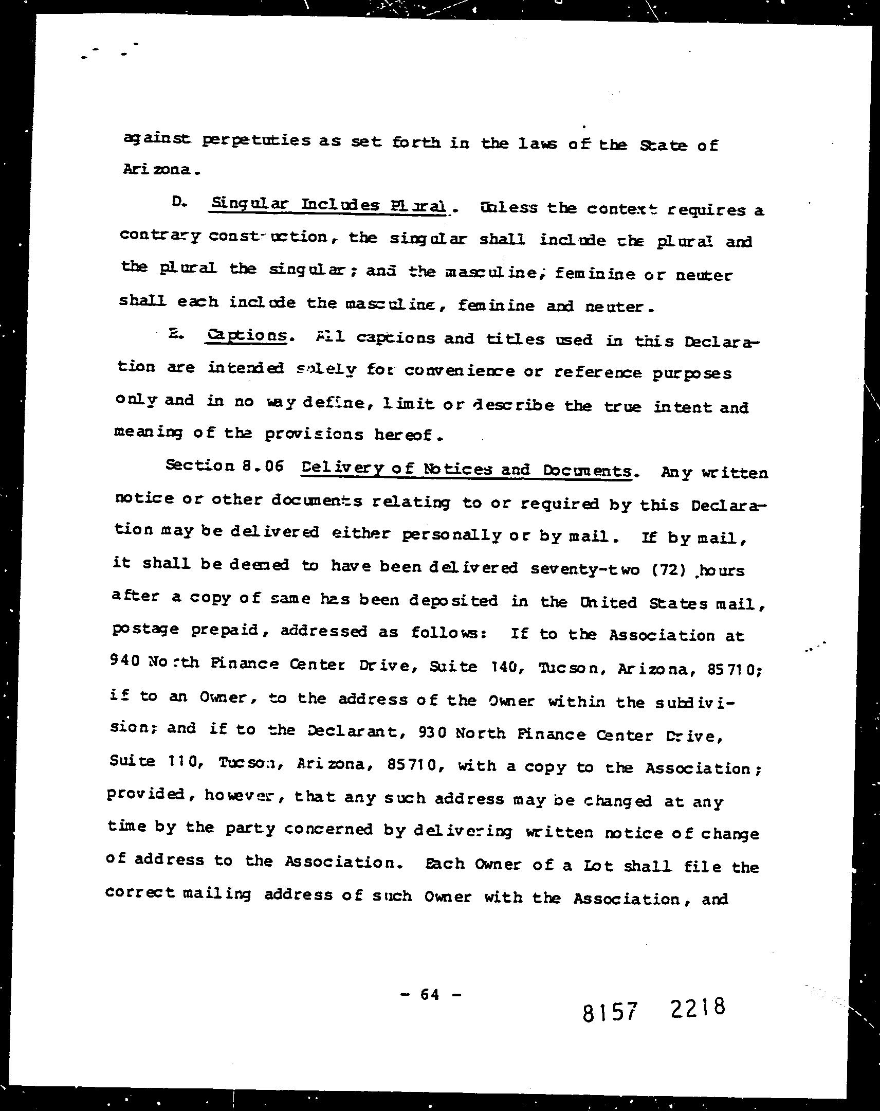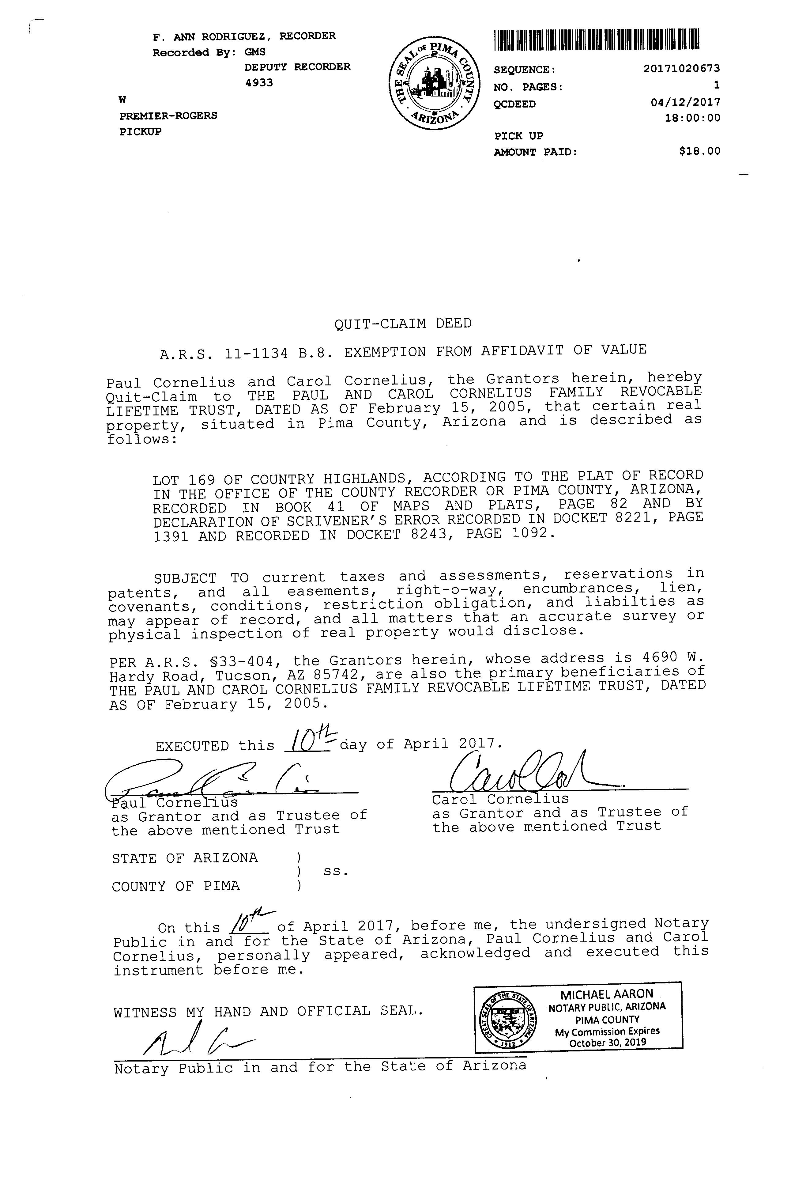 Mailing Address : 4690 W Hardy Rd, Tucson AZ 85742-4185 R044