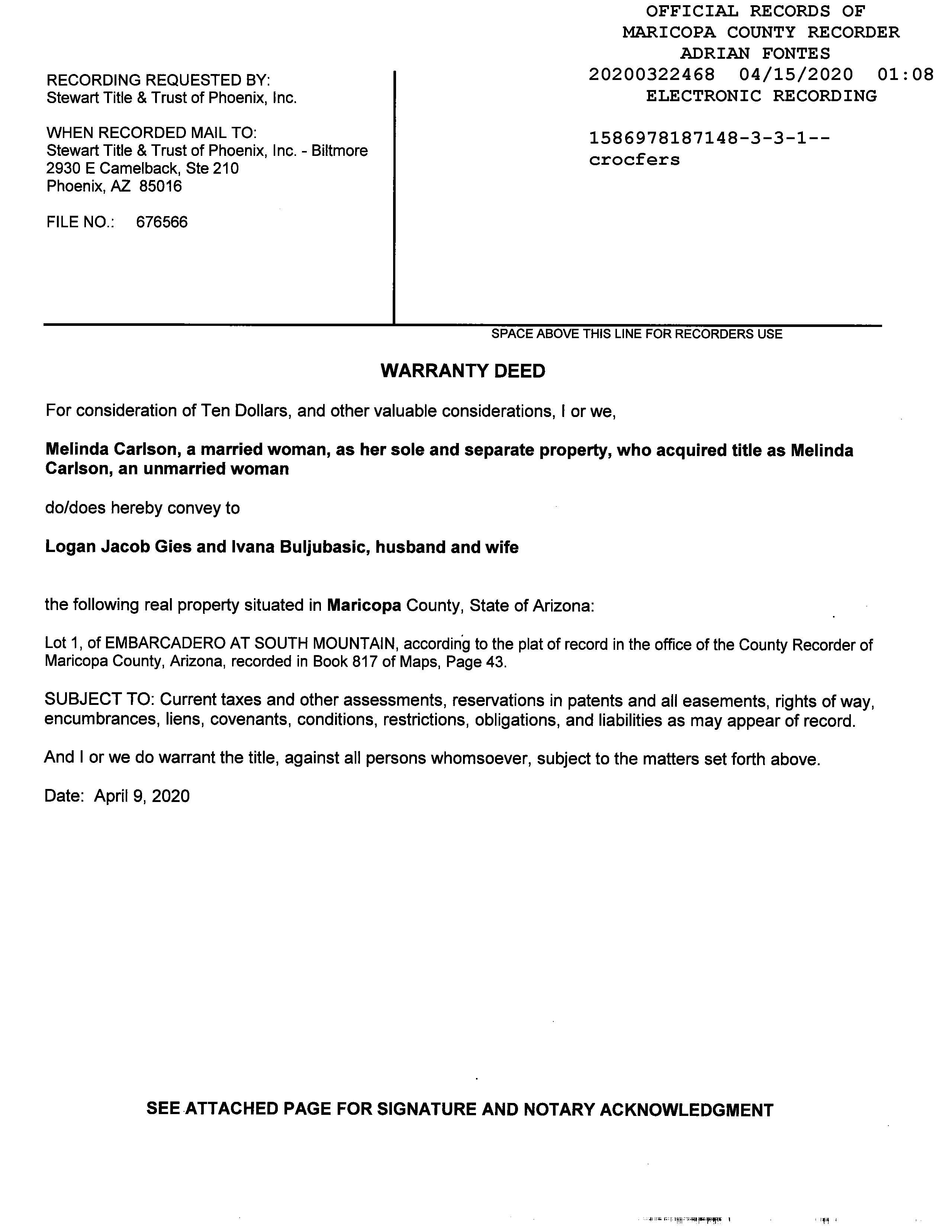 Legal Description : Lot 1 Embarcadero At South Mountain Mcr 817-43