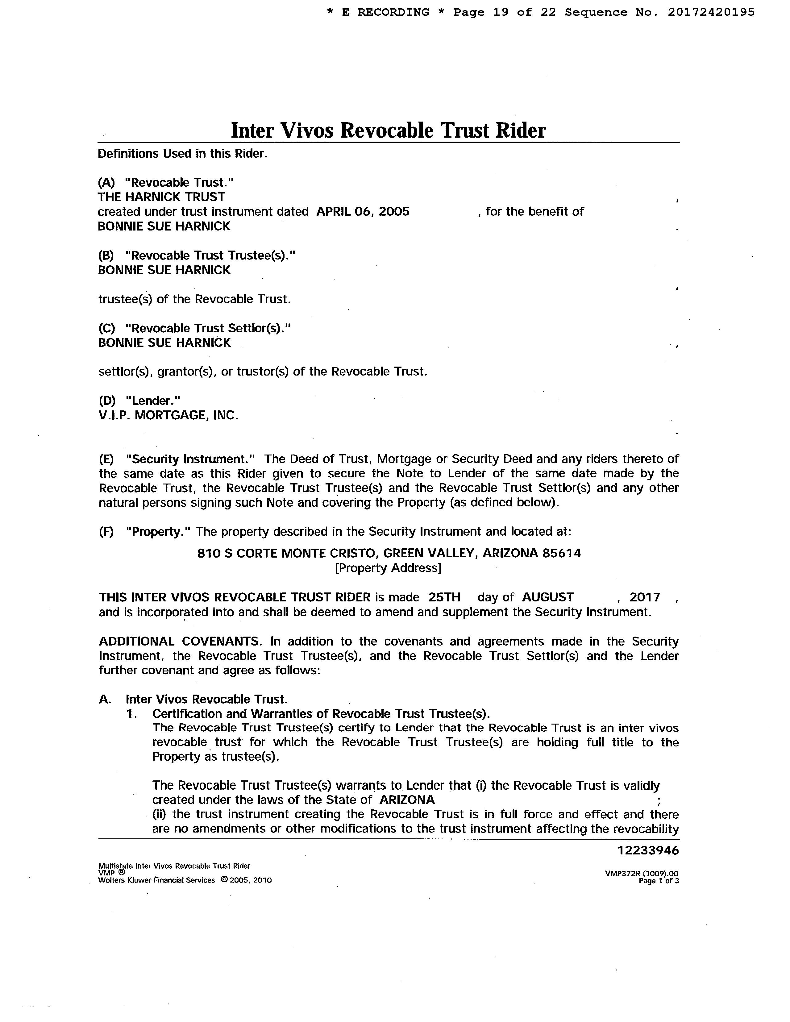 MAIL: ATTN: BONNIE S HARNICK TR 810 S CORET MONTE CRISTO GREEN VALLEY AZ 85614-4767
