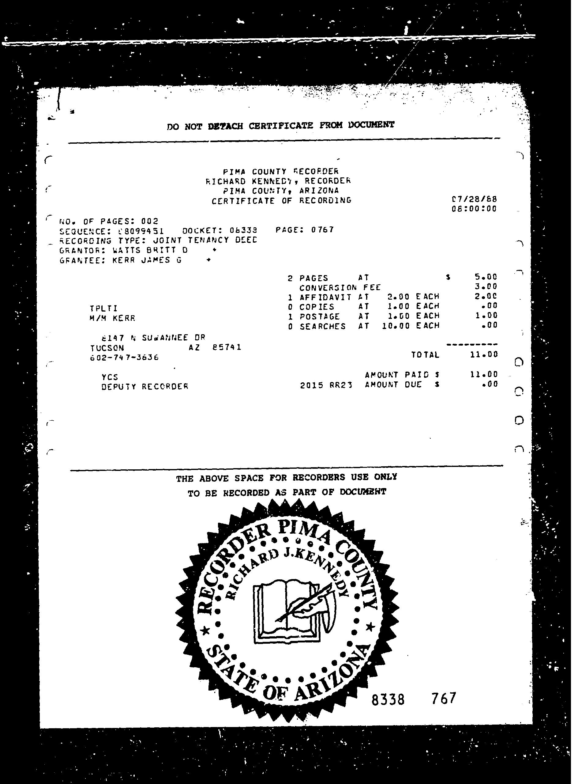 Owner Name: Kerr James G / APN / Alternate APN: 225-34-1560 / Deed Type: Joint Tenancy Deed