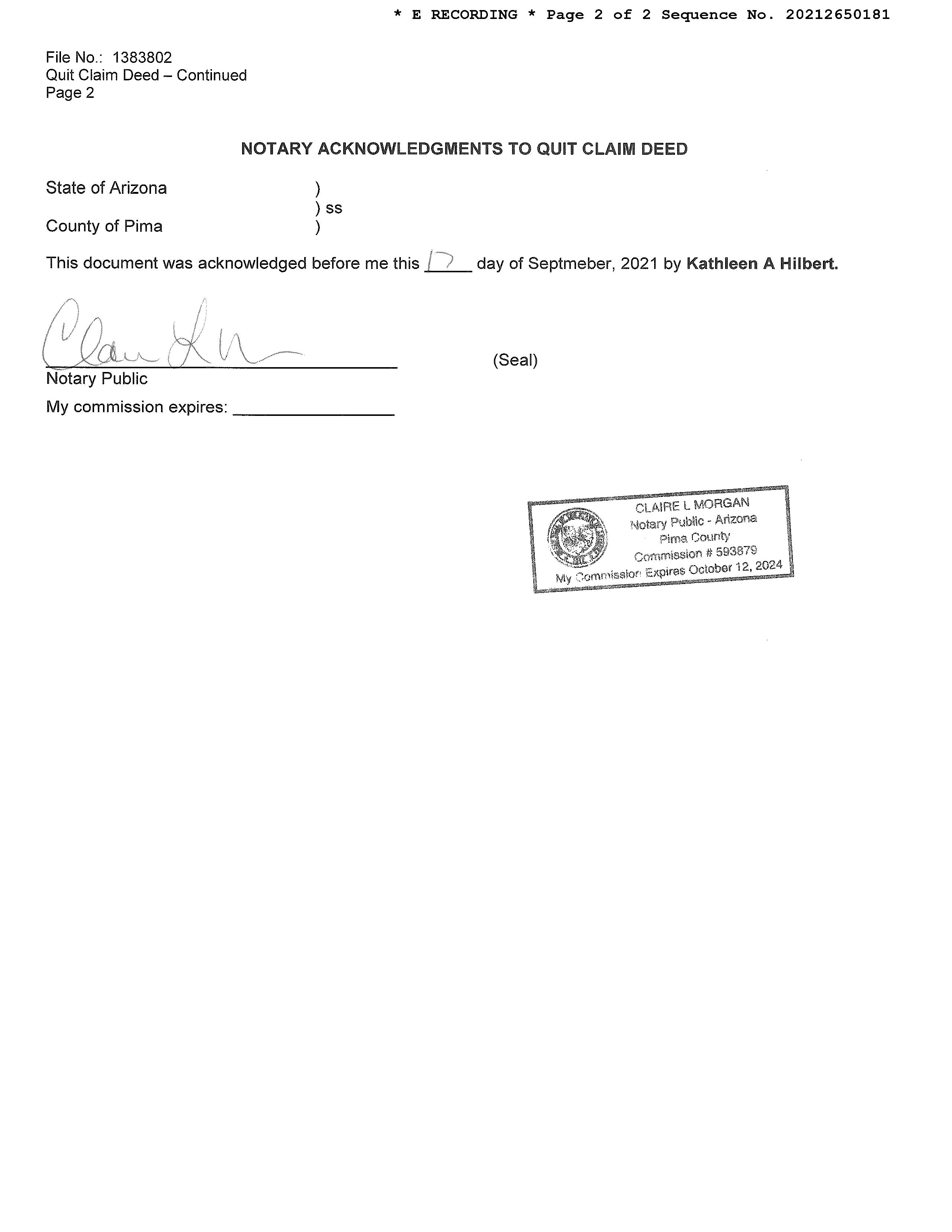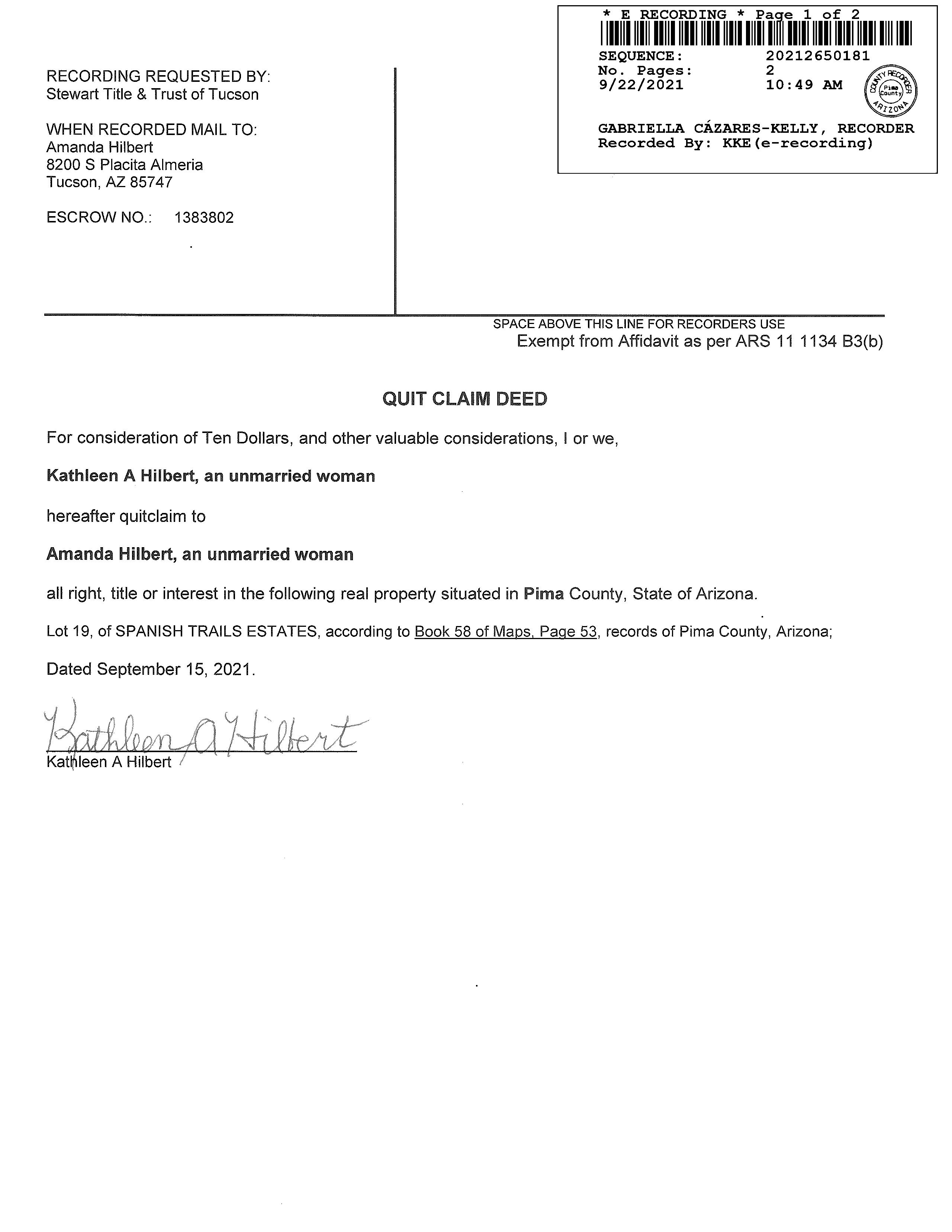 OWNER: HILBERT KATHLEEN A & AMANDA AFFIDAVIT 2020 440205 02/13/2020