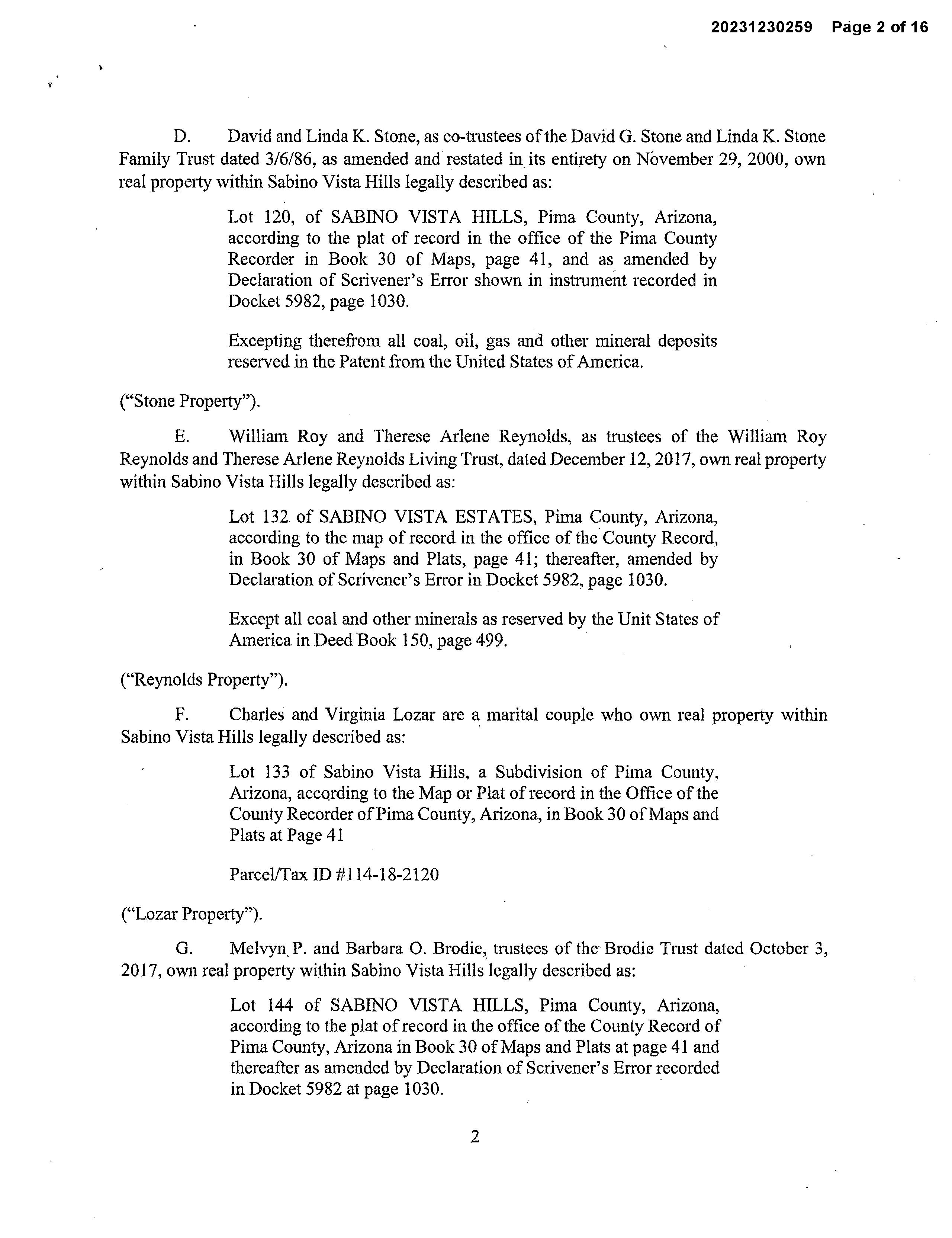 Owner Name : Lozar Charles Subdivision : Sabino Vista Hills