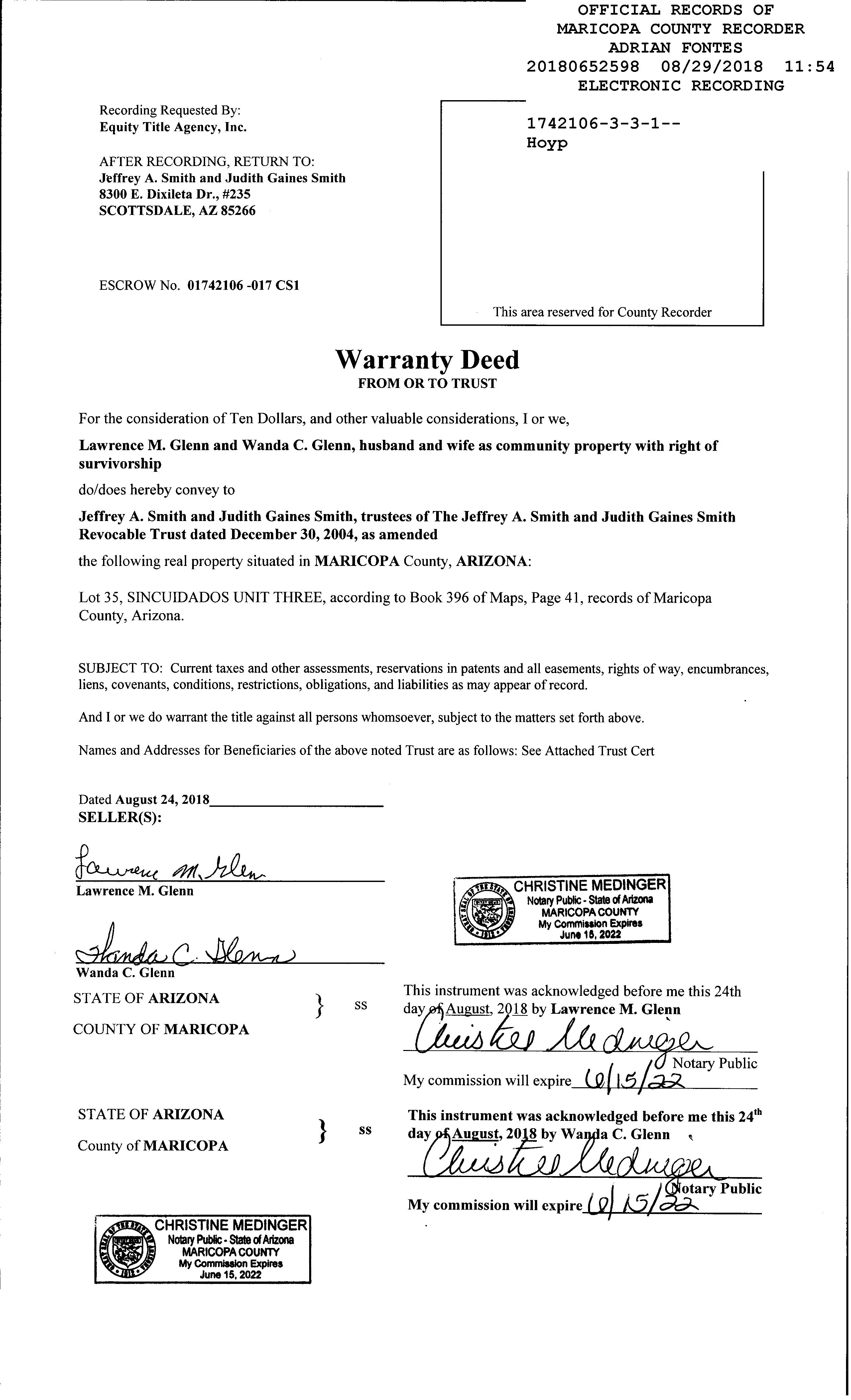 Seller Name : Glenn Lawrence M & Wanda C