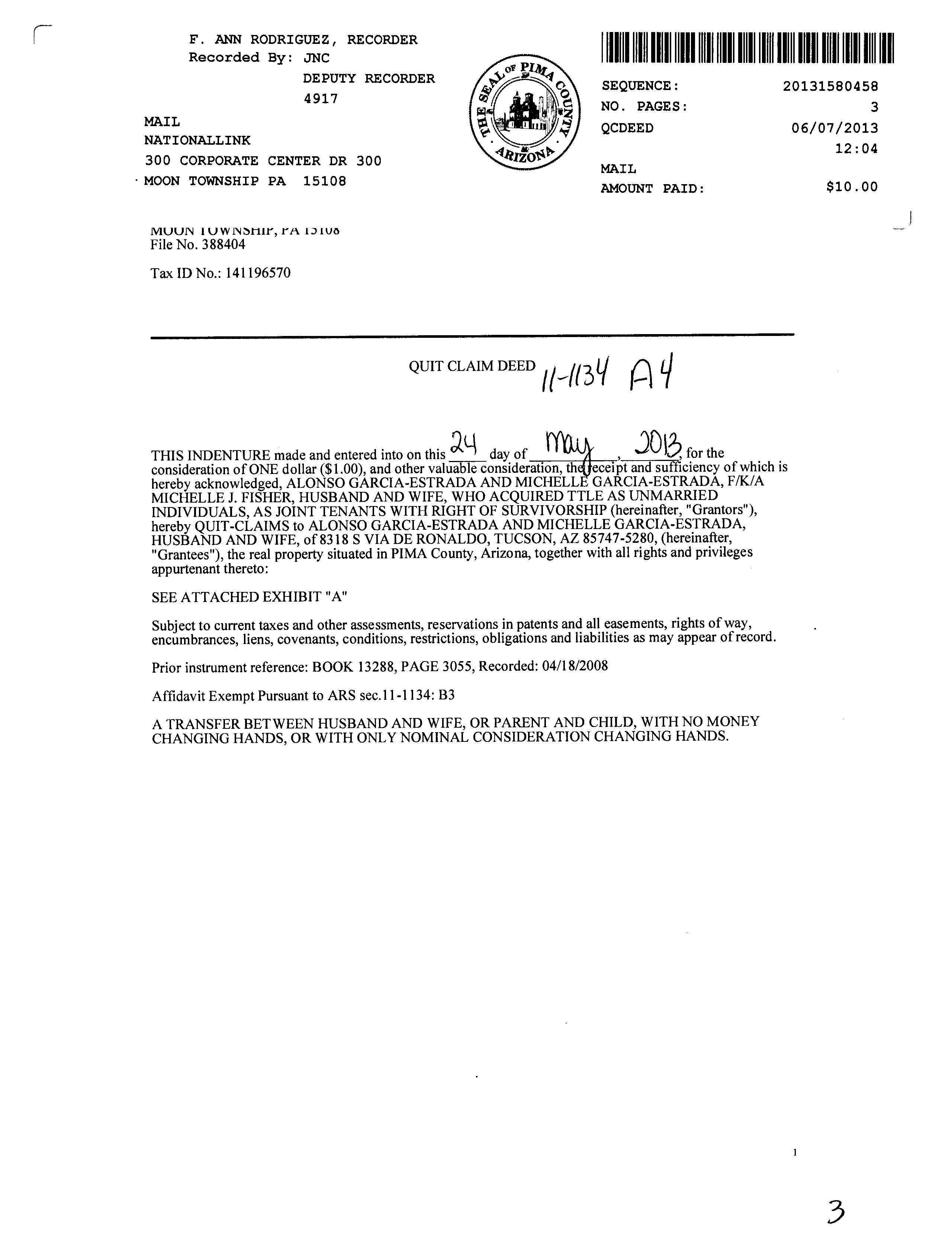 This information is furnished without fee and without benefit of a complete title search. No liability is assumed by First American Title. If it is desired that liability be assumed, you may apply for a policy of title insurance with First American Title Insurance Company.