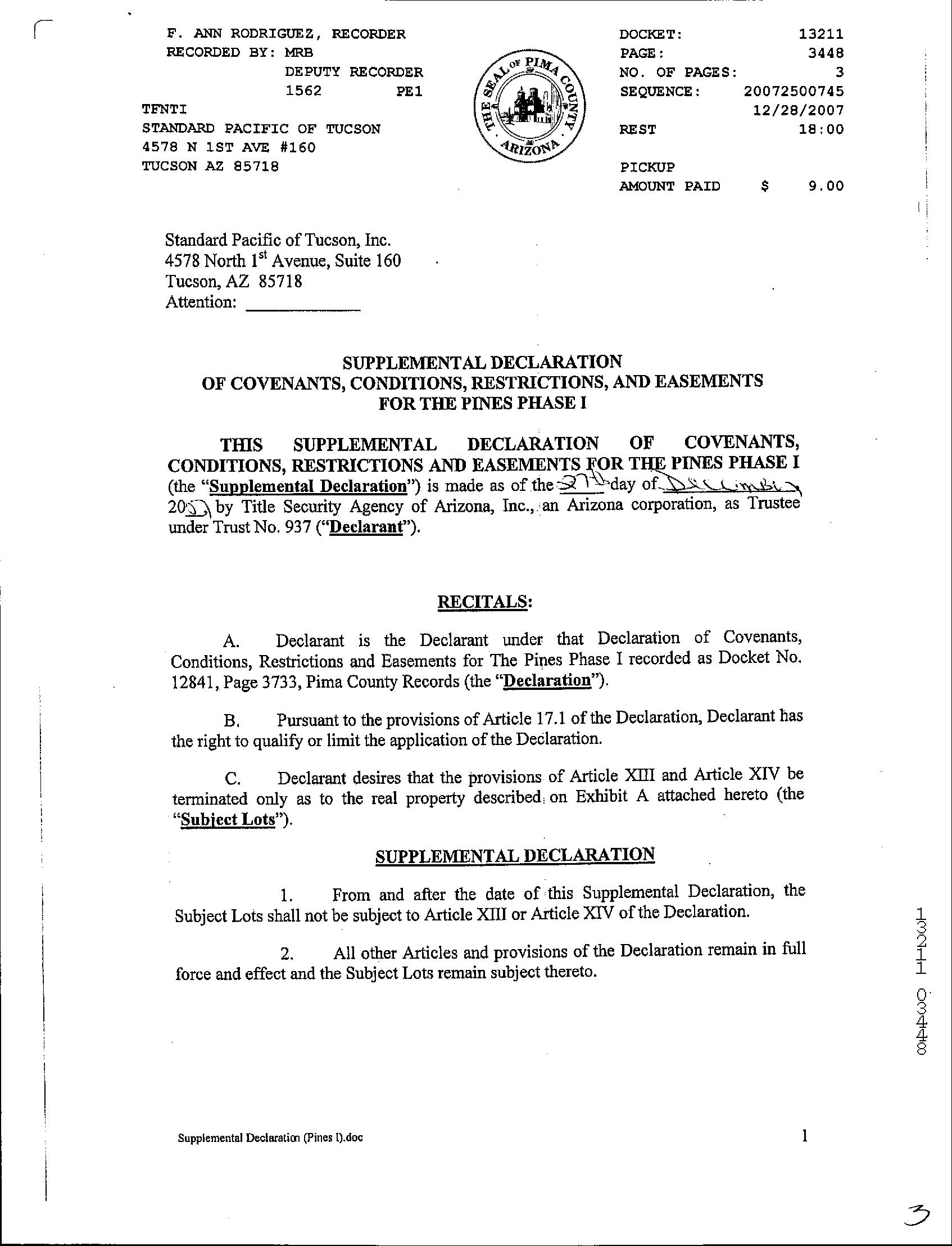 This information is furnished without fee and without benefit of a complete title search. No liability is assumed by First American Title. If it is desired that liability be assumed, you may apply for a policy of title insurance with First American Title Insurance Company.