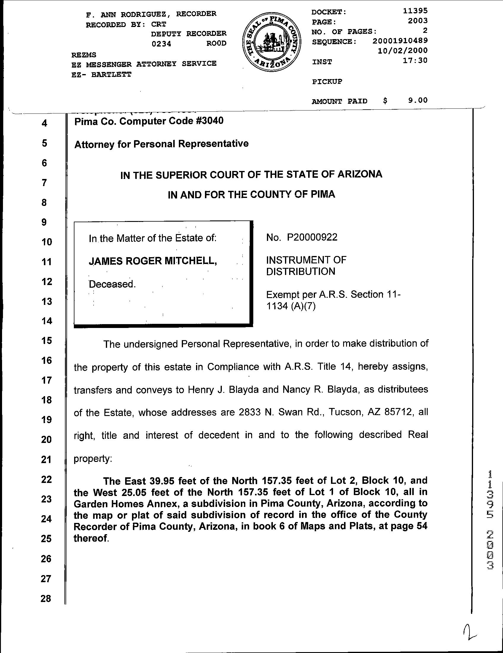 INSTRUMENT REC DATE