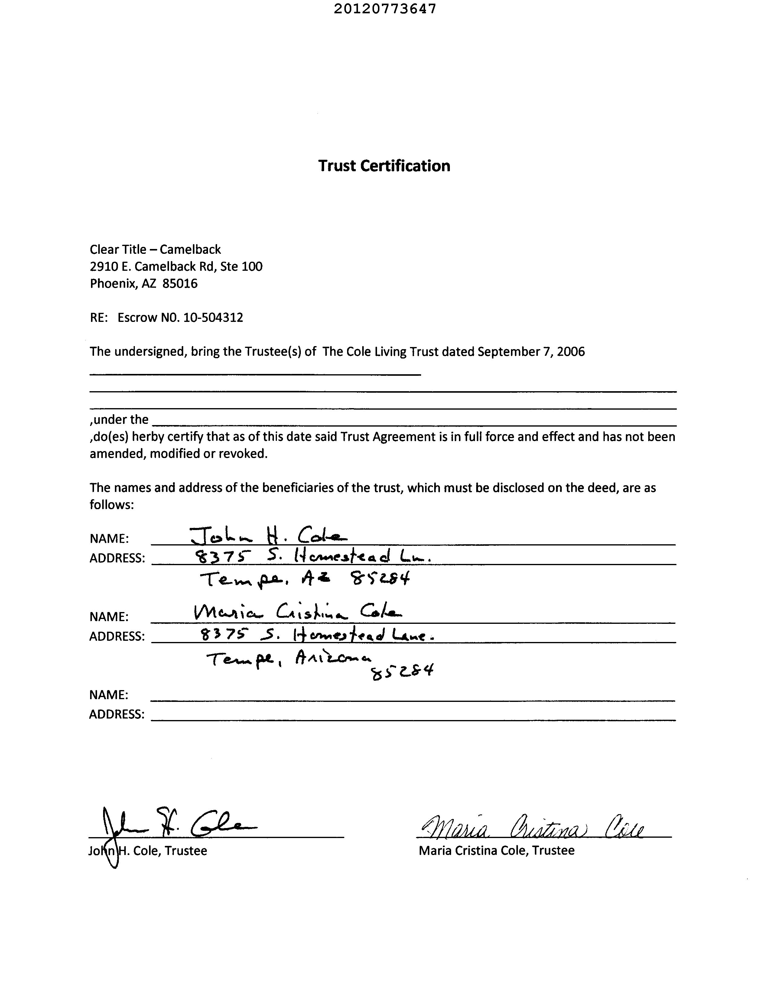 Know that our wiring instructions do not change so any communication is suspect. Our banking institution is First American Trust.