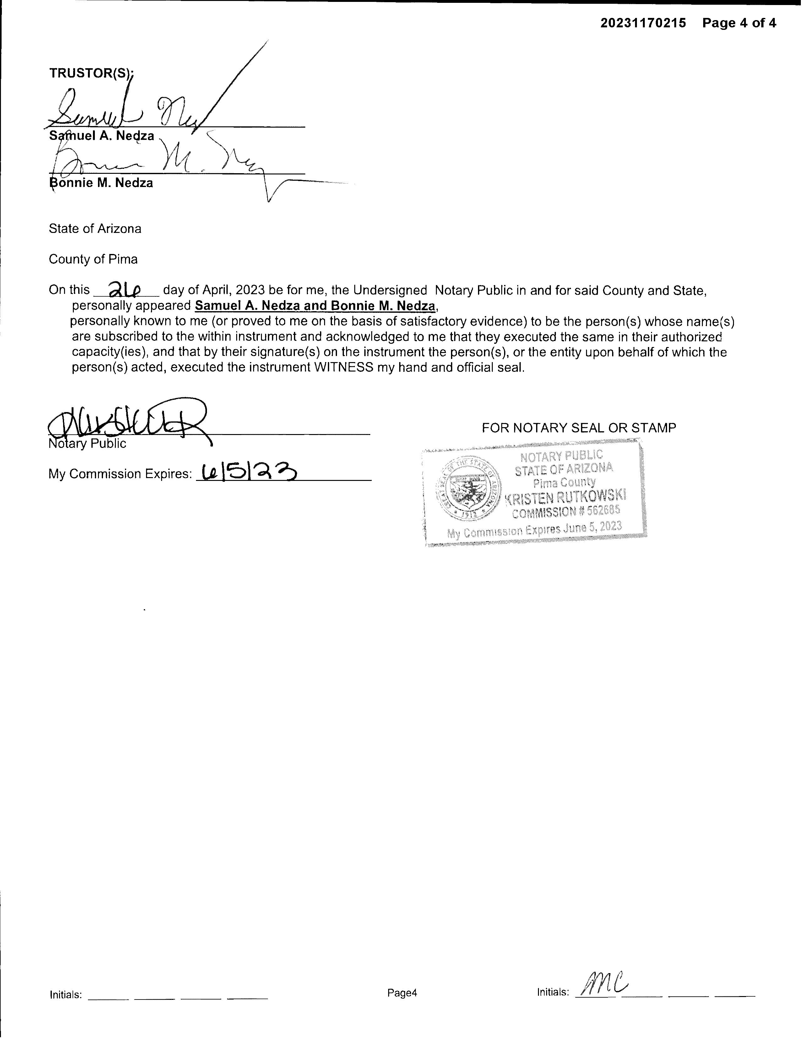 OWNER: NEDZA SAMUEL & BONNIE AFFIDAVIT 2023 1170214 04/27/2023