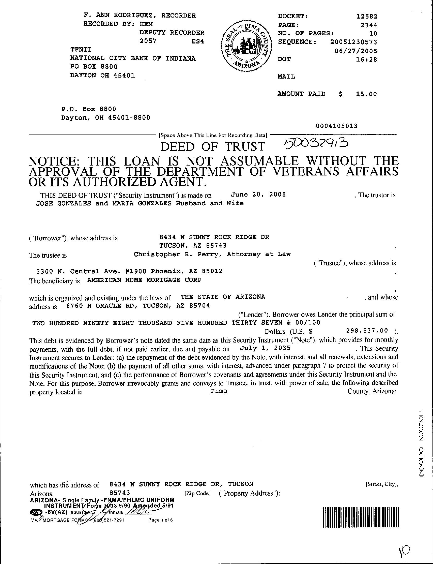 OWNER: GONZALES JOSE & MARIA     12582 2343 06/27/2005