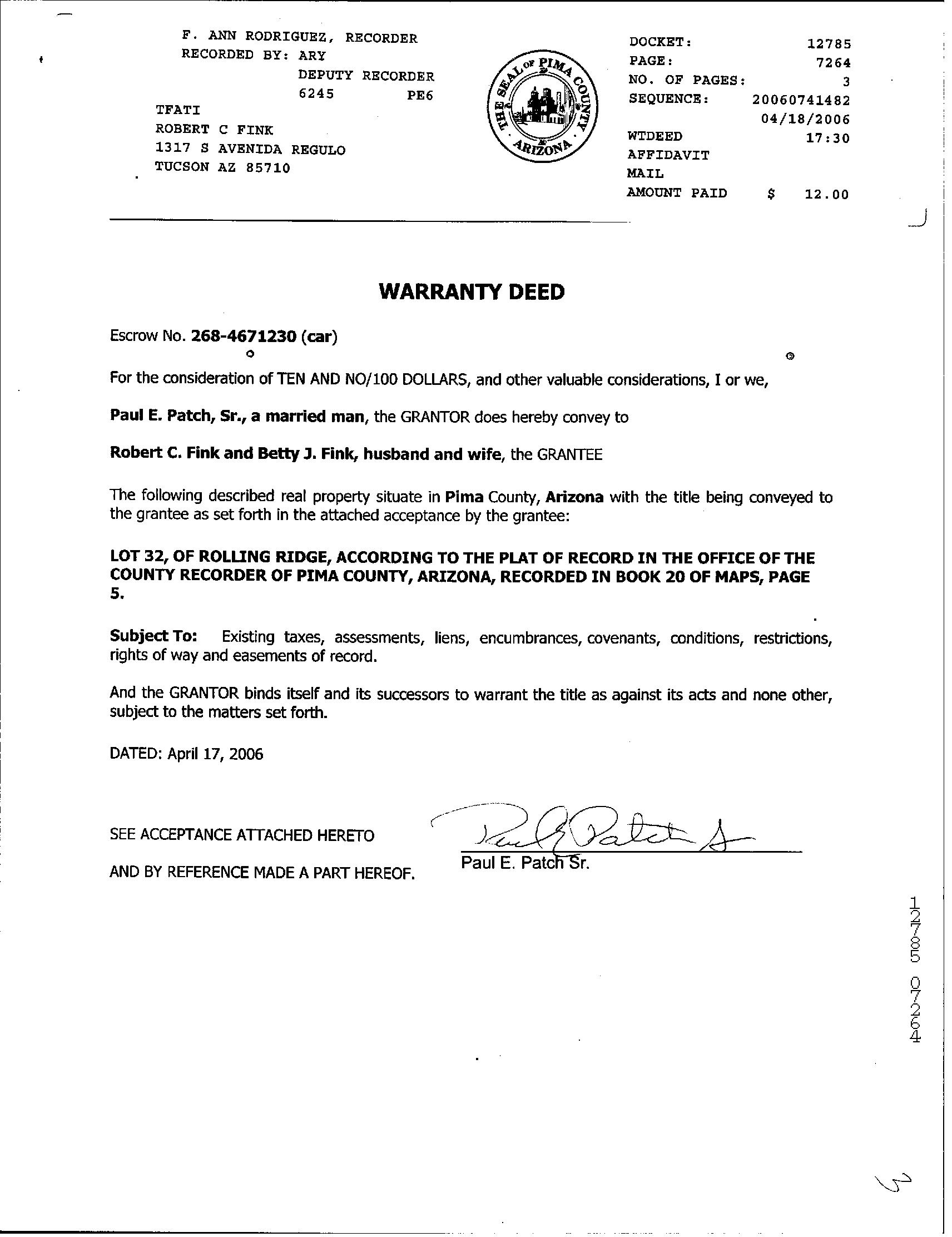 OWNER: FINK ROBERT C & BETTY J CP/RS