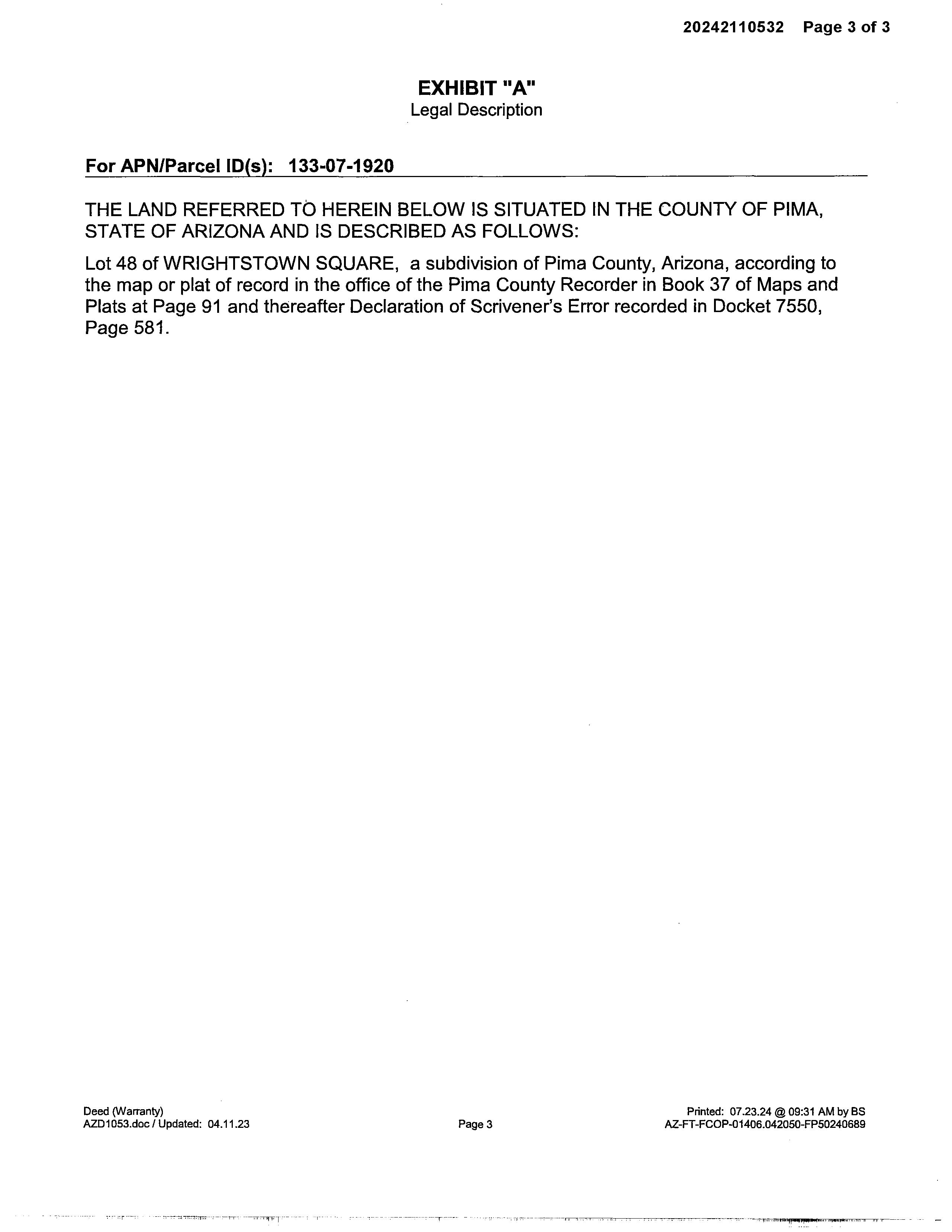 8501 E Haverhill Ln Tucson AZ 85715 APN: 133-07-1920